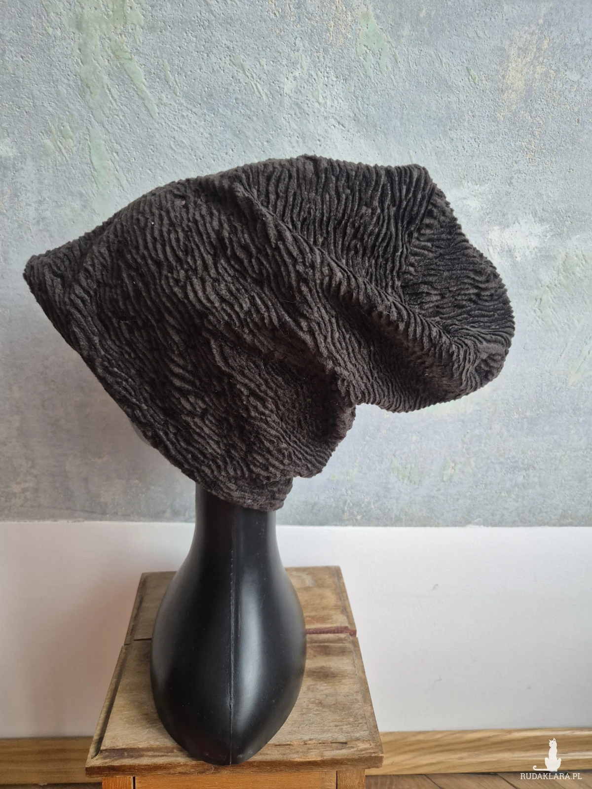 Futrzana czapka czarna krótki włos sztuczne futro czapka  na podszewce, kolor ciemny brąz, faktura jak karakuły, rozmiar uniwersalny  bardzo ciepła, box a1