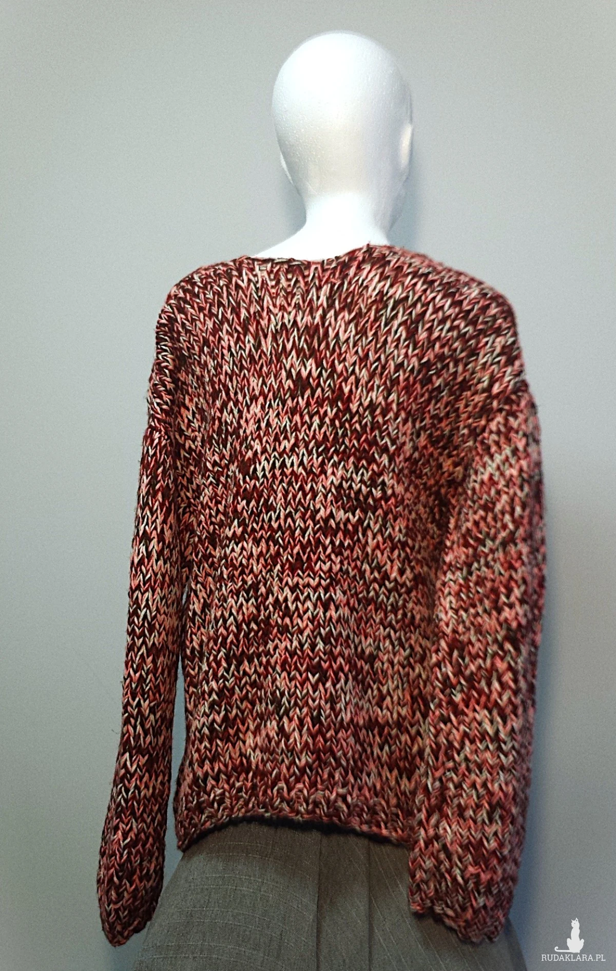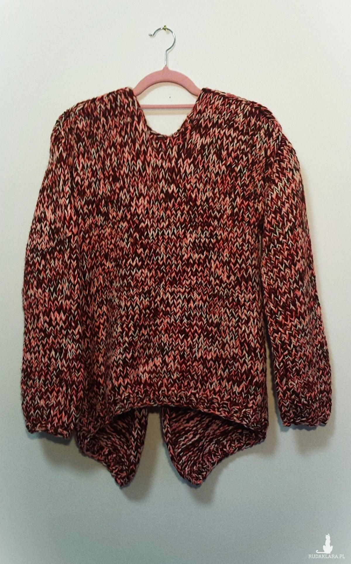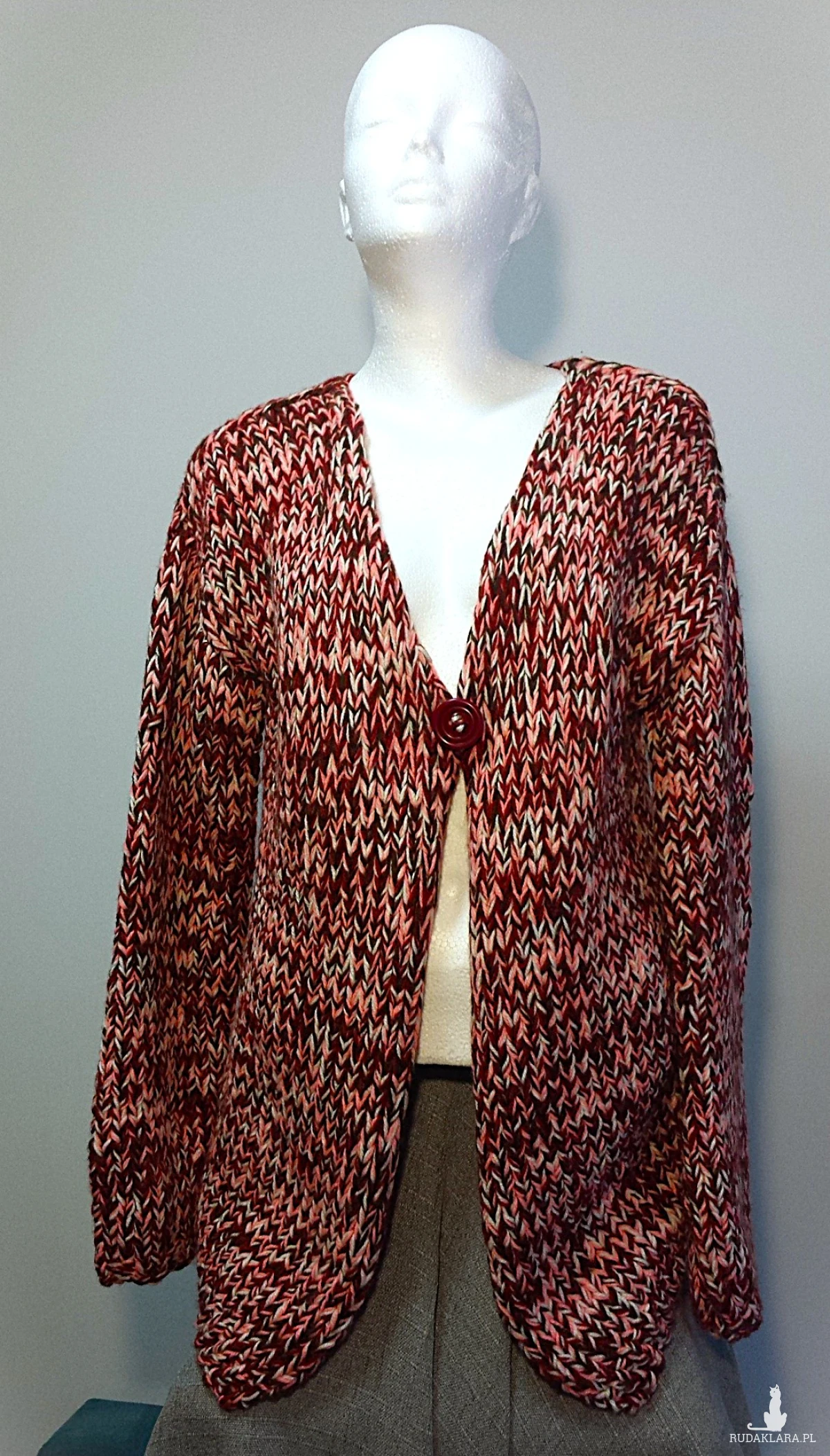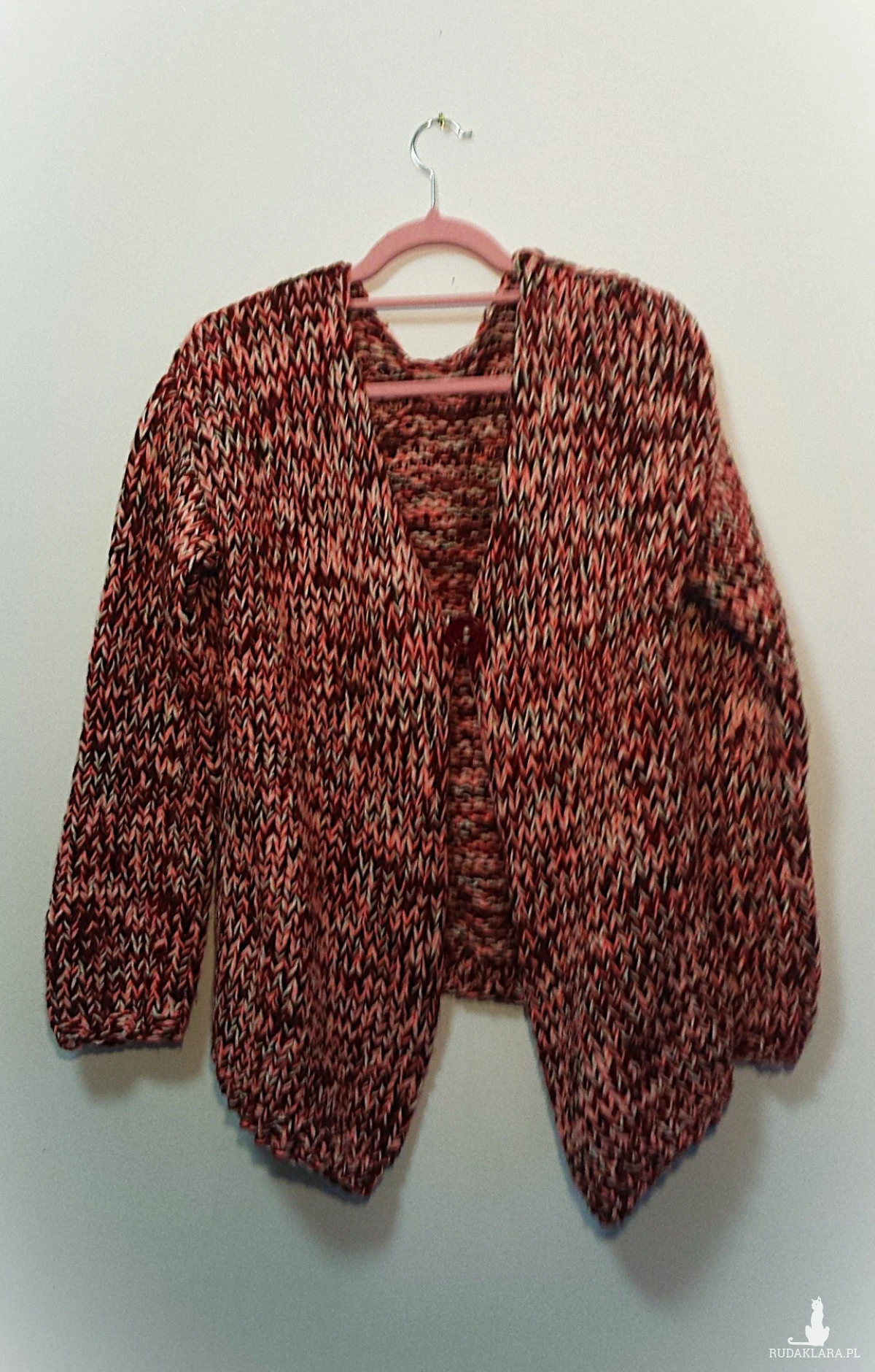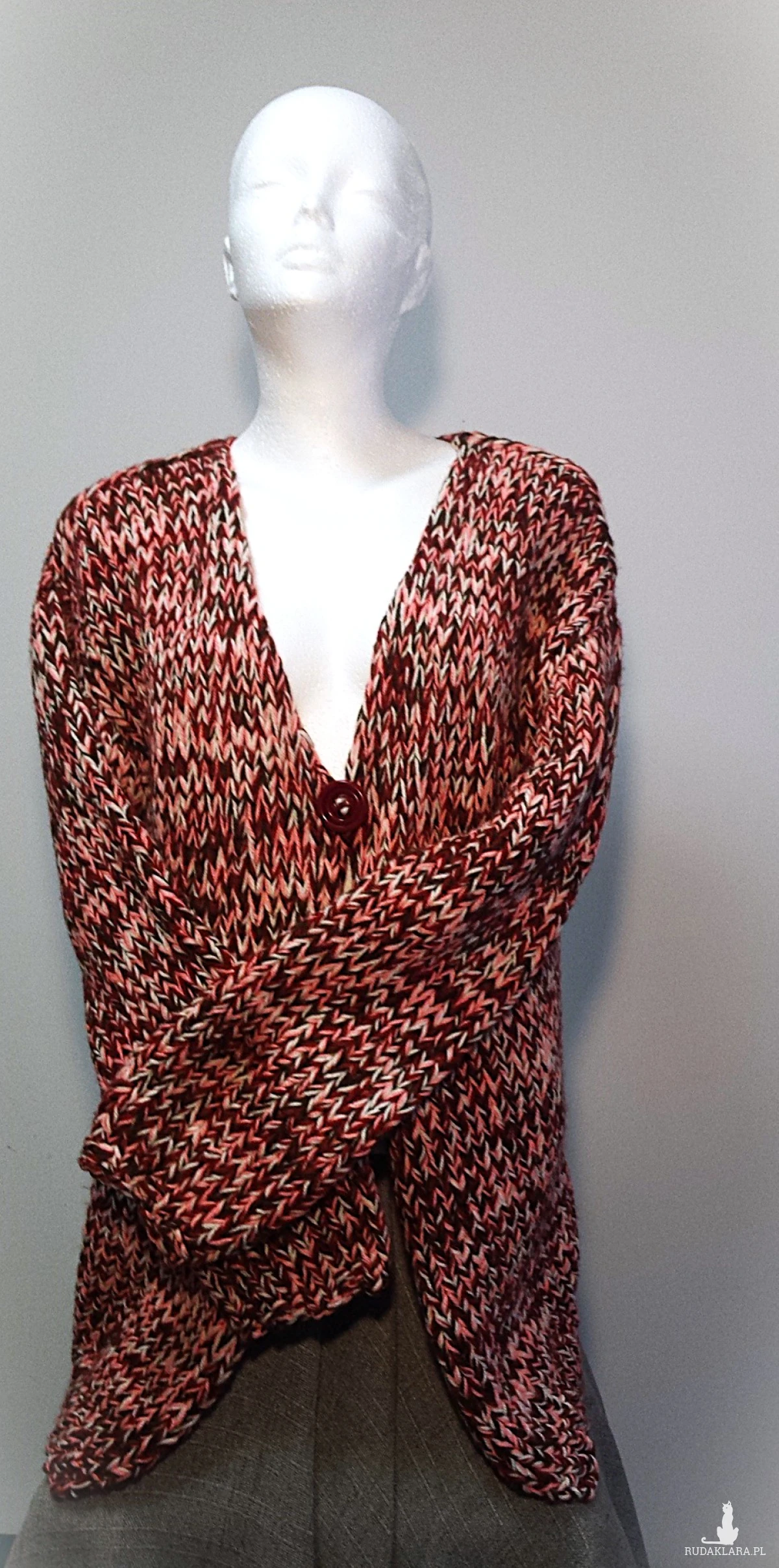 Oryginalny, praktyczny prezent dla Ciebie lub bliskiej osoby*** Ciepły kardigan wykony na drutach - z potrójnie robionej miękkiej włóczki akrylowej. Rozmiar uniwersalny, aczkolwiek ten model jest stosunkowo duży -na osoby o rozmiarze 36 będzie obszerny, co może być jego atutem. Możliwość wykonania w różnych wersjach kolorystycznych i rozmiarach, na zamówienie (czas wykonania 10 dni). Inne fasony na pozostałych moich aukcjach.