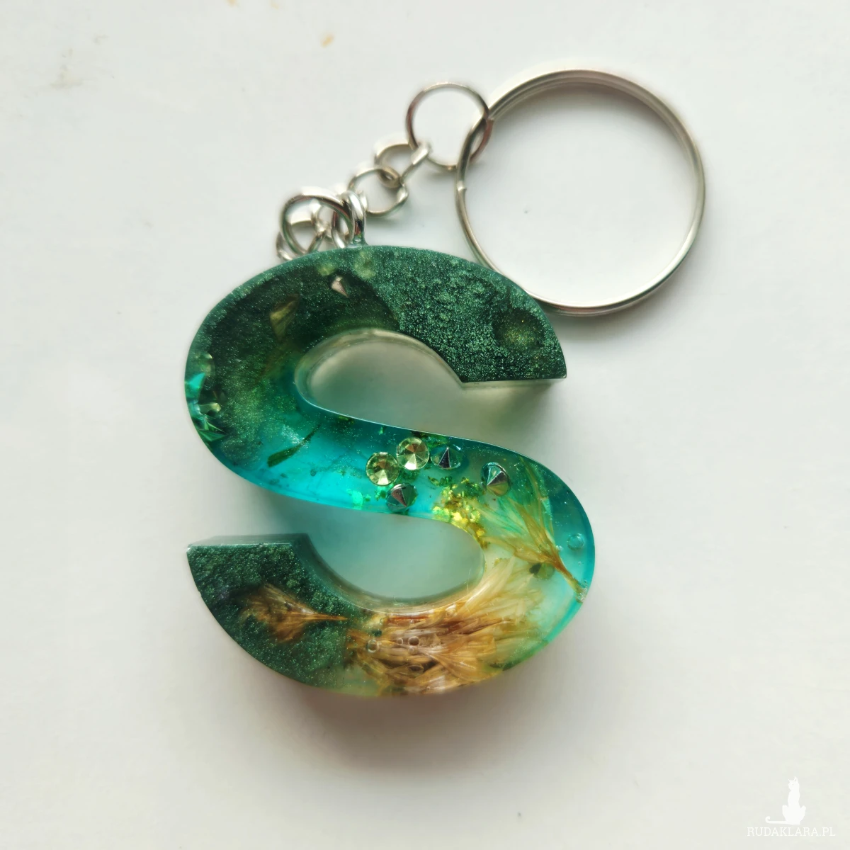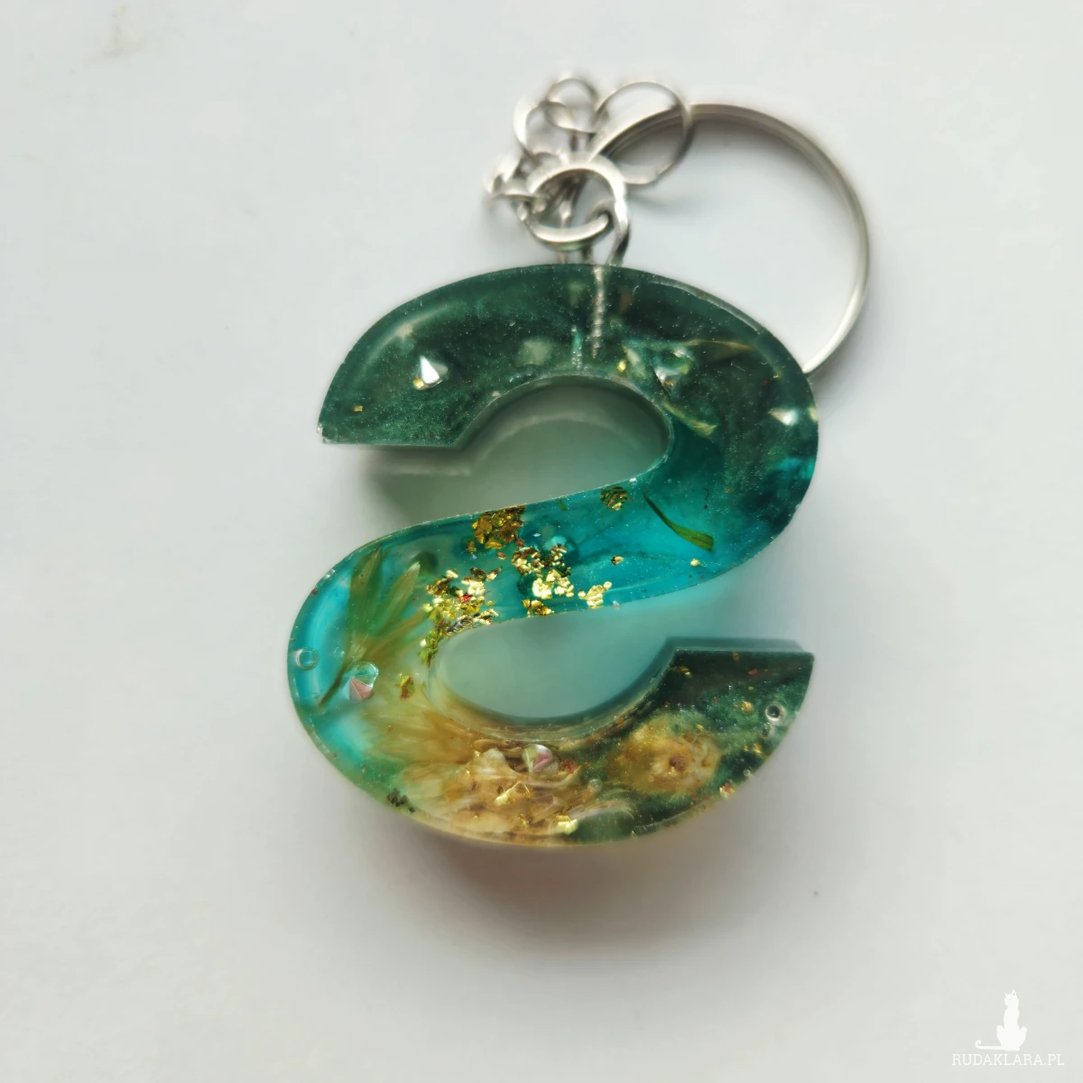 Brelok literka S niebieska i zieleń z chaber biały