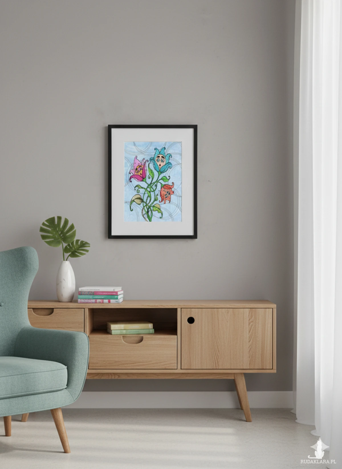 Wydruk autorskiego rysunku na satynowym papierze o gramaturze 200g/m2 - sprzedawany bez ramki - rysunki w ramkach na zdjęciach to wizualizacje.