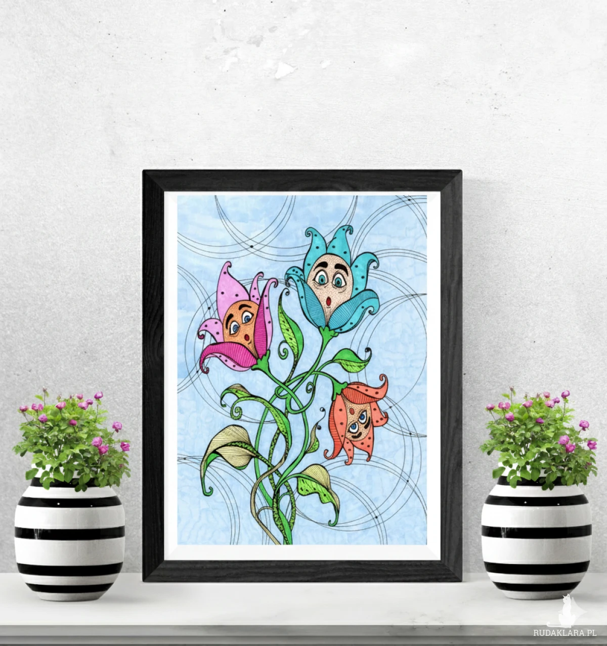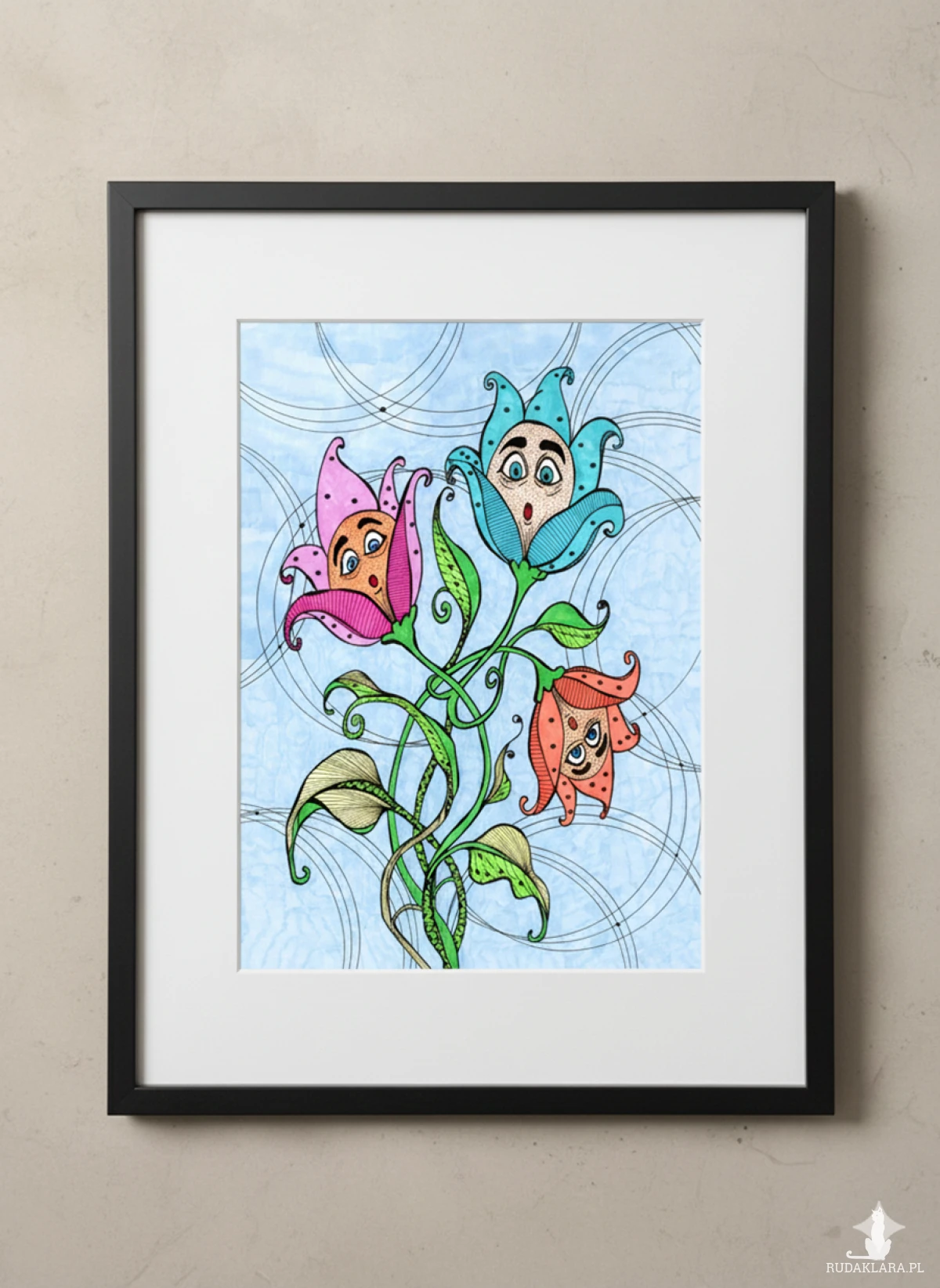 Wydruk autorskiego rysunku na satynowym papierze o gramaturze 200g/m2 - sprzedawany bez ramki - rysunki w ramkach na zdjęciach to wizualizacje.
