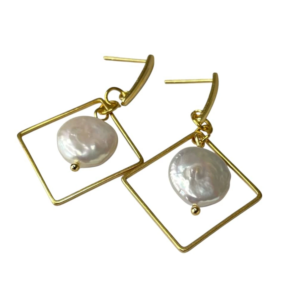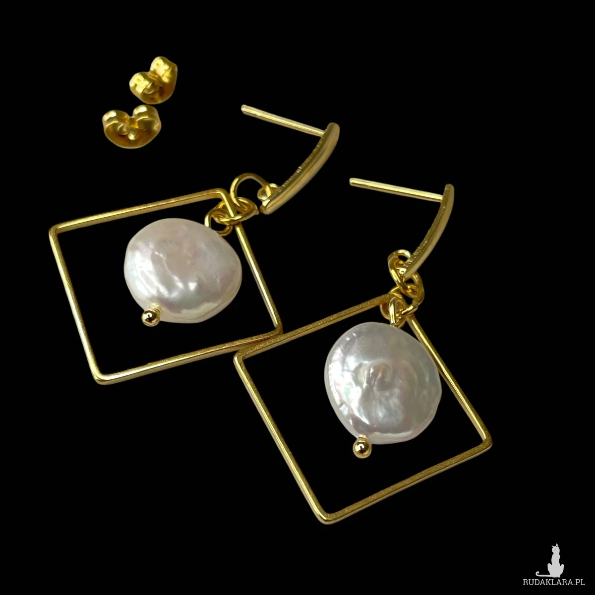 Kolczyki w kształcie pozłacanego rombu z perłą zawieszoną w jego wnętrzu to harmonijne spotkanie geometrii z klasyczną elegancją. Lekka, graficzna forma nadaje im nowoczesnego charakteru, a perła wprowadza nutę ponadczasowej klasy i subtelnego wdzięku. Wykonane z pozłacanej stali chirurgicznej zachwycają precyzją detalu oraz delikatnym blaskiem, który pięknie podkreśla rysy twarzy. To biżuteria o nieprzemijającym stylu - elegancka, ale współczesna - idealna zarówno do minimalistycznych zestawów, jak i bardziej wieczorowych stylizacji.