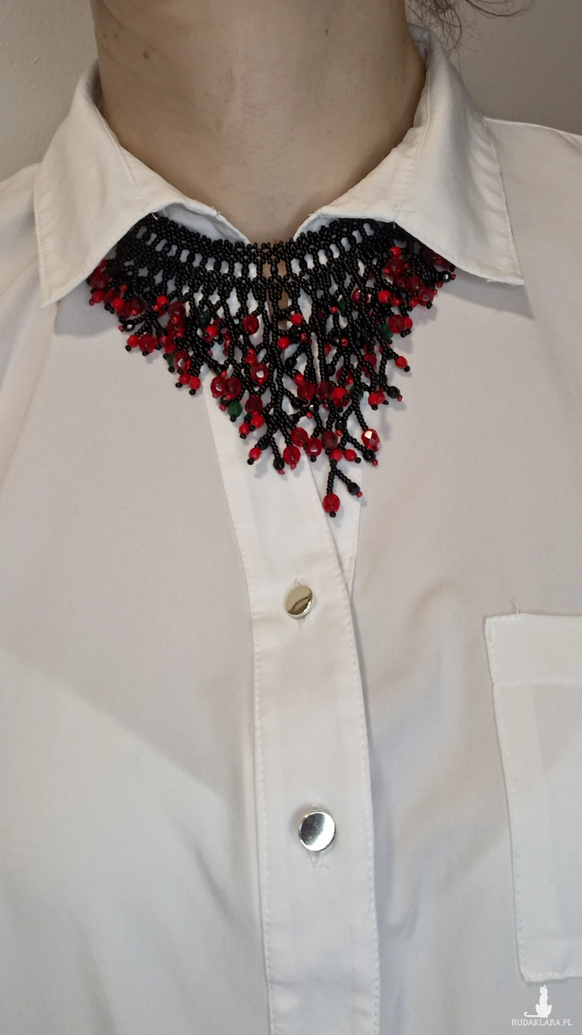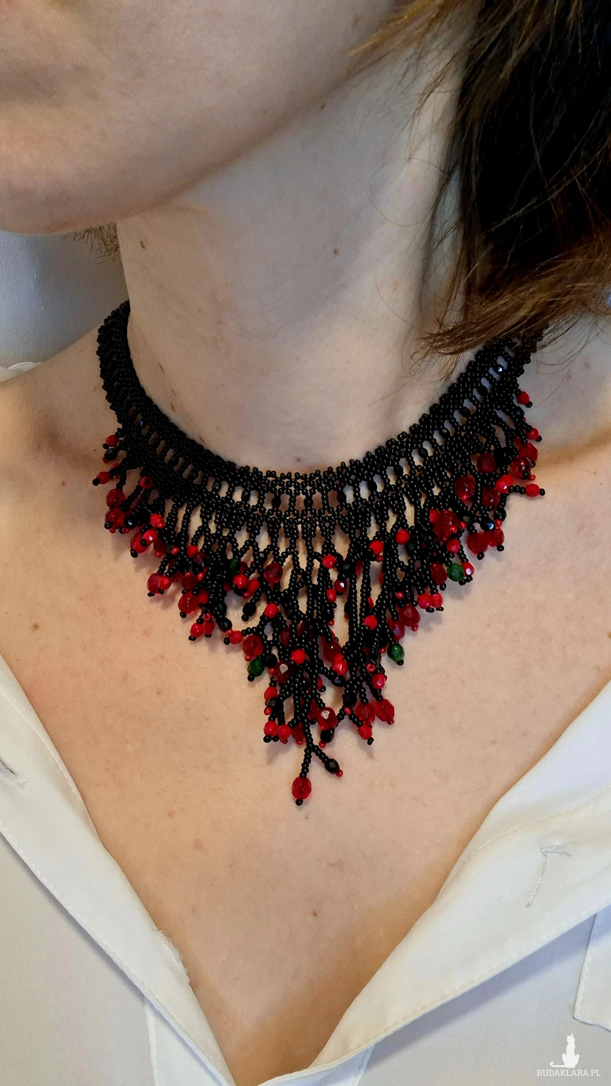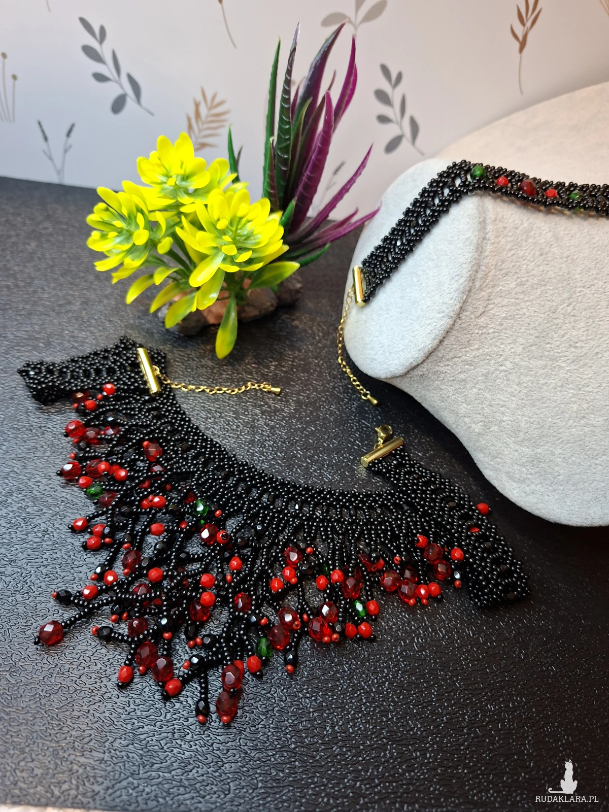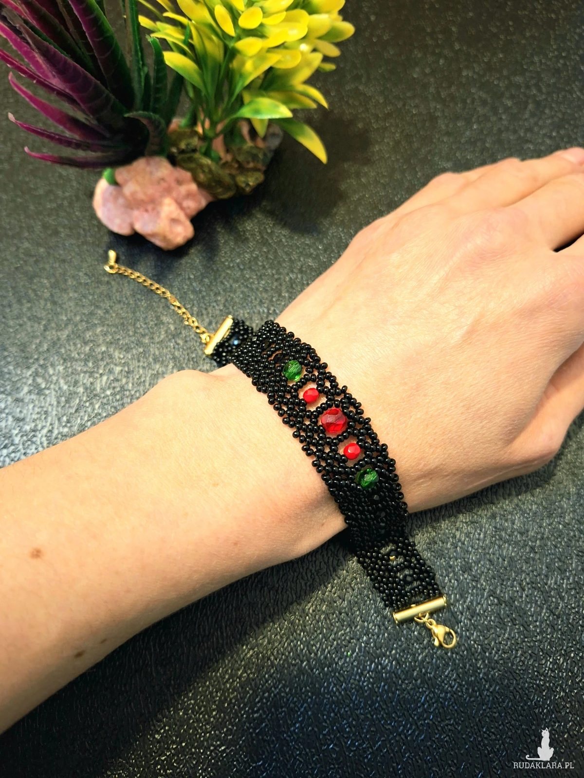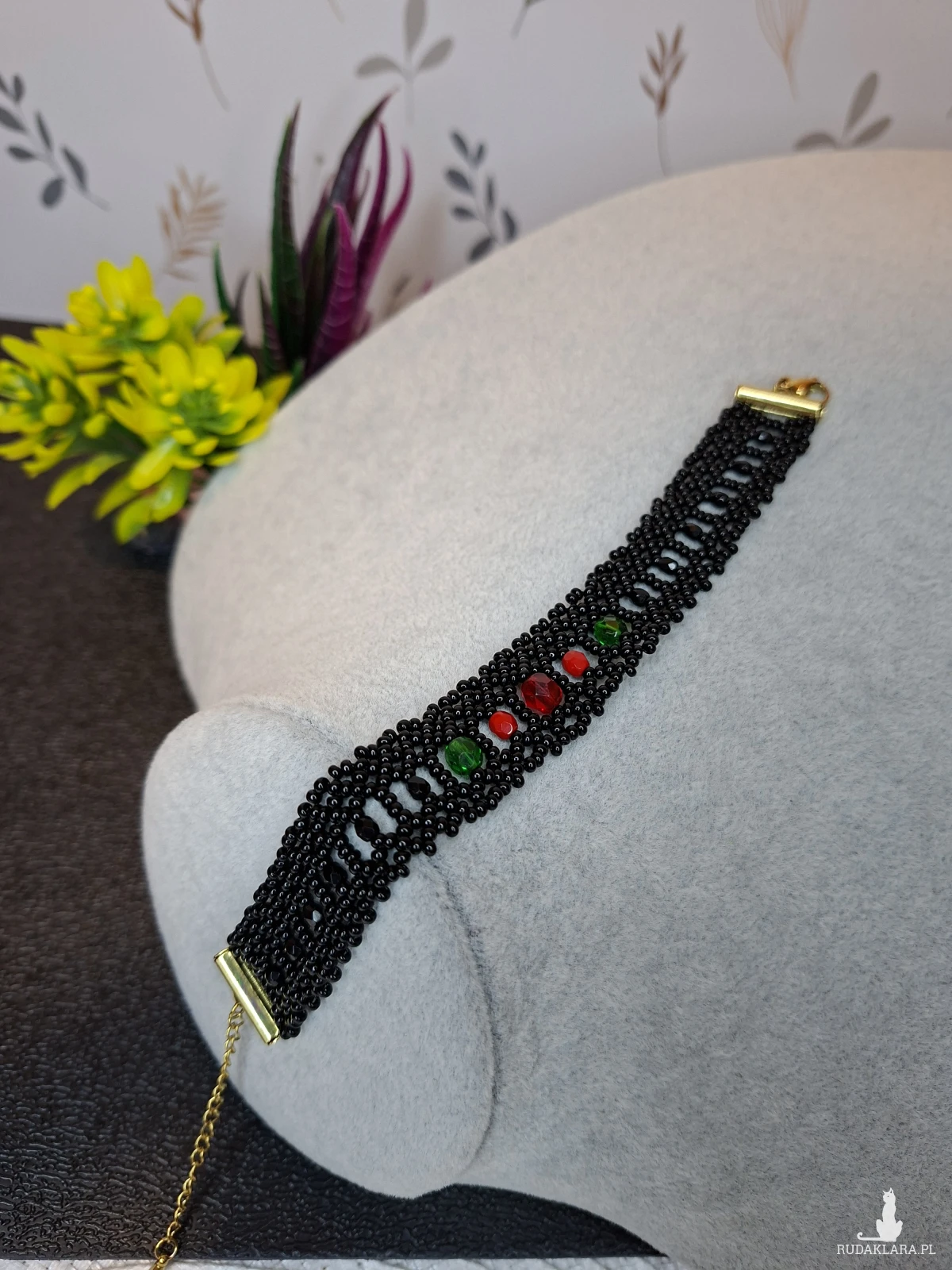 1. Codzienna pielęgnacja i użytkowanie Unikaj kontaktu z chemikaliami: Zawsze zdejmuj biżuterię przed użyciem perfum, lakieru do włosów, balsamów, kremów, a także środków czyszczących. Chroń przed wilgocią: Unikaj noszenia biżuterii podczas kąpieli, prysznica, pływania (w basenie czy morzu) lub podczas intensywnego wysiłku fizycznego, który powoduje pocenie się. Ostatni element garderoby: Zakładaj biżuterię jako ostatni element stroju, po nałożeniu makijażu i kosmetyków, a zdejmuj jako pierwszy. Unikaj ekstremalnych temperatur: Długotrwała ekspozycja na bezpośrednie światło słoneczne lub silne źródła ciepła (np. kaloryfer) może powodować blaknięcie kolorów lub pękanie niektórych koralików. Czyszczenie Delikatne mycie: Biżuterię z koralików (zwłaszcza naturalnych) najlepiej czyścić miękką, lekko wilgotną ściereczką lub w letniej wodzie z użyciem łagodnego mydła (bez fosforanów). Dokładne osuszanie: Po umyciu biżuterię należy natychmiast i dokładnie osuszyć miękką szmatką, aby zapobiec uszkodzeniu nici lub metalowych elementów. Unikaj silnych środków: Nie używaj silnych detergentów, past do zębów ani chemicznych środków do czyszczenia biżuterii, które mogą uszkodzić delikatne koraliki. Przechowywanie Suche i zamknięte miejsce: Przechowuj biżuterię w suchym, zamkniętym pojemniku, szkatułce wyściełanej miękkim materiałem lub w małym woreczku z tkaniny, aby ograniczyć dostęp powietrza, kurzu i wilgoci. Unikaj plątania: Długie naszyjniki lub bransoletki najlepiej przechowywać w pozycji wiszącej na specjalnym stojaku lub wieszaczku, co zapobiegnie ich splątaniu i uszkodzeniu. Oddzielne przegródki: Unikaj przechowywania różnych rodzajów biżuterii razem, aby zapobiec zarysowaniom i wzajemnemu uszkodzeniu przez twardsze elementy. 2. Nie przeznaczony dla dzieci poniżej 3 roku życia. 3. Kolor na zdjęciu może się trochę różnić od rzeczywistości.