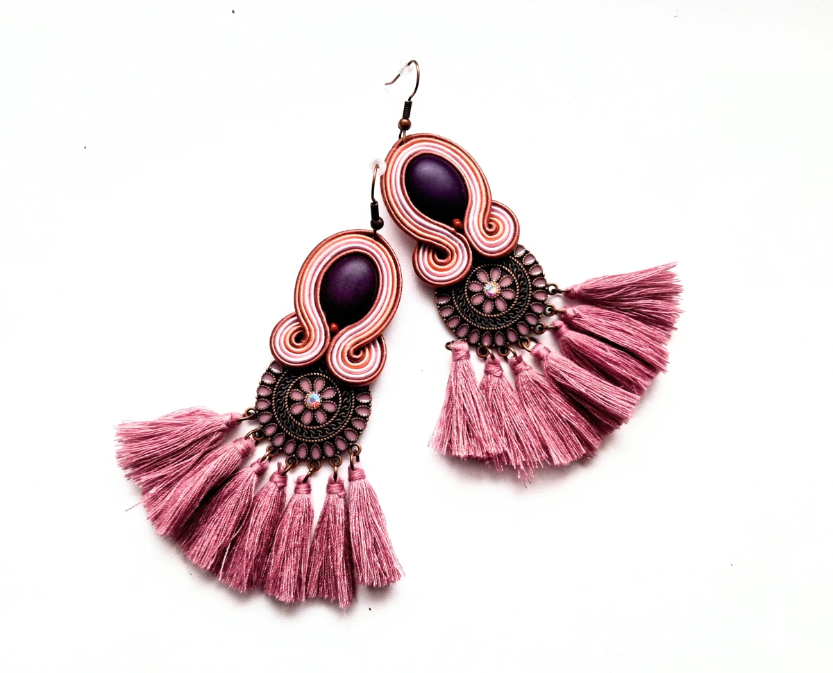 Kolczyki sutaszowe ręcznie haftowane.