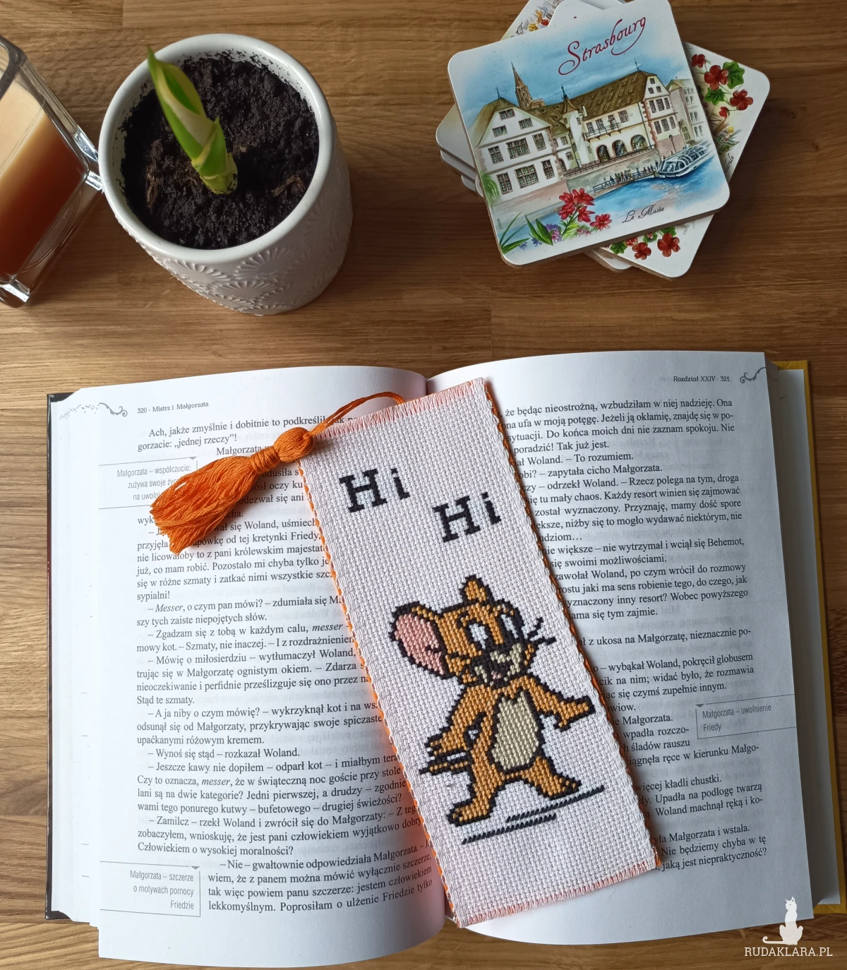 Unikatowa zakładka wykonana z dbałością o każdy detal. Wyszywana haftem krzyżykowym i starannie wykończona filcem, dzięki czemu jest trwała i przyjemna w użytkowaniu.