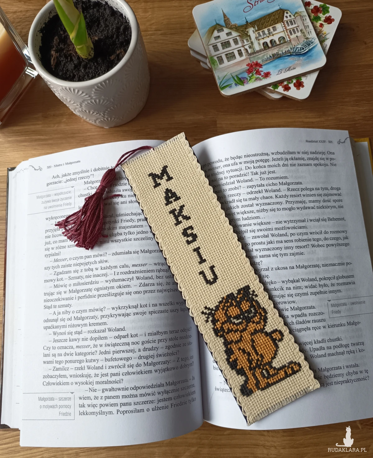 Unikatowa zakładka wykonana z dbałością o każdy detal. Wyszywana haftem krzyżykowym i starannie wykończona filcem, dzięki czemu jest trwała i przyjemna w użytkowaniu.