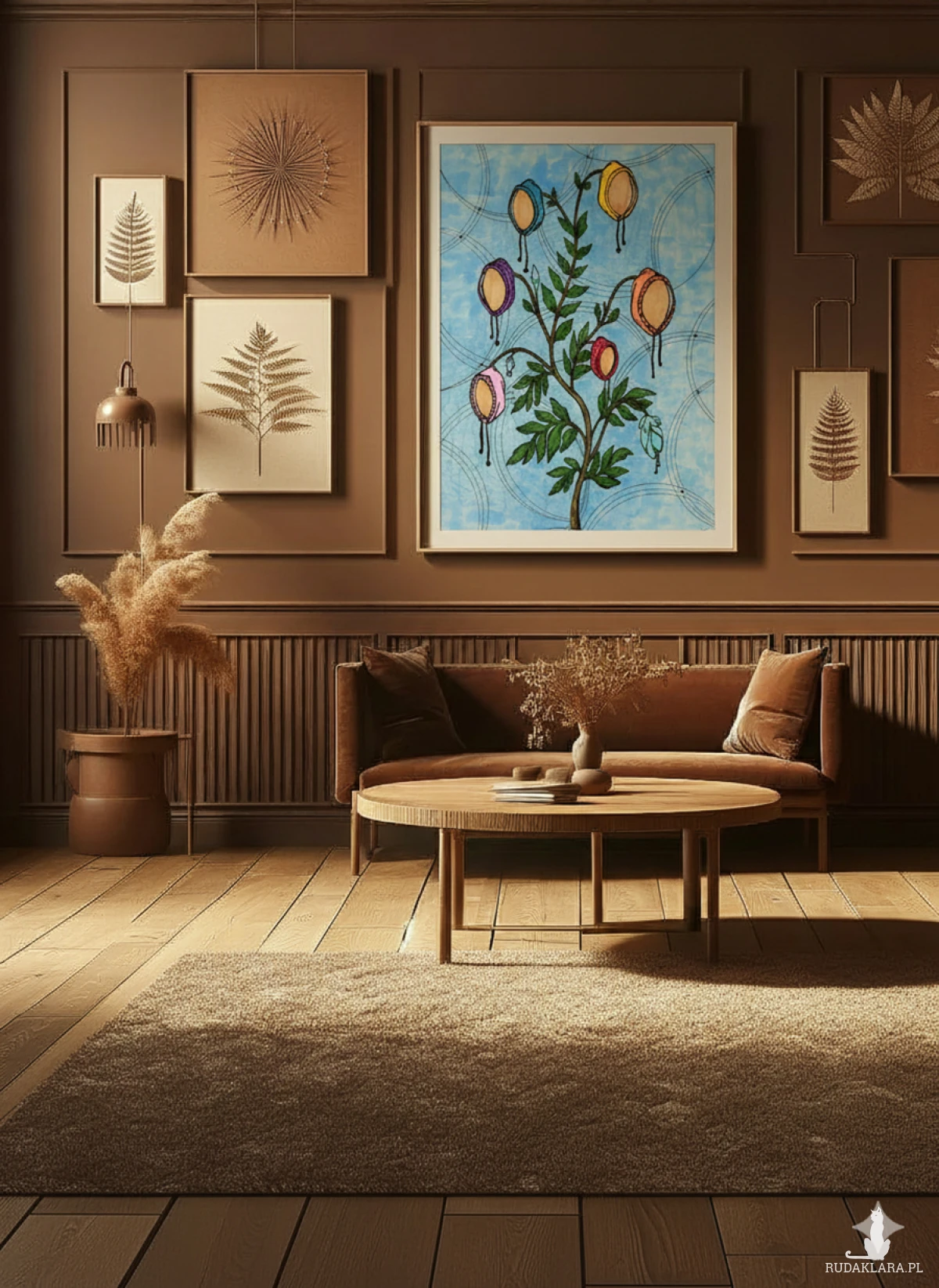 To najbardziej przytulna i pełna ciepła ilustracja w całej serii, nadająca roślinom niemal ludzkie cechy.