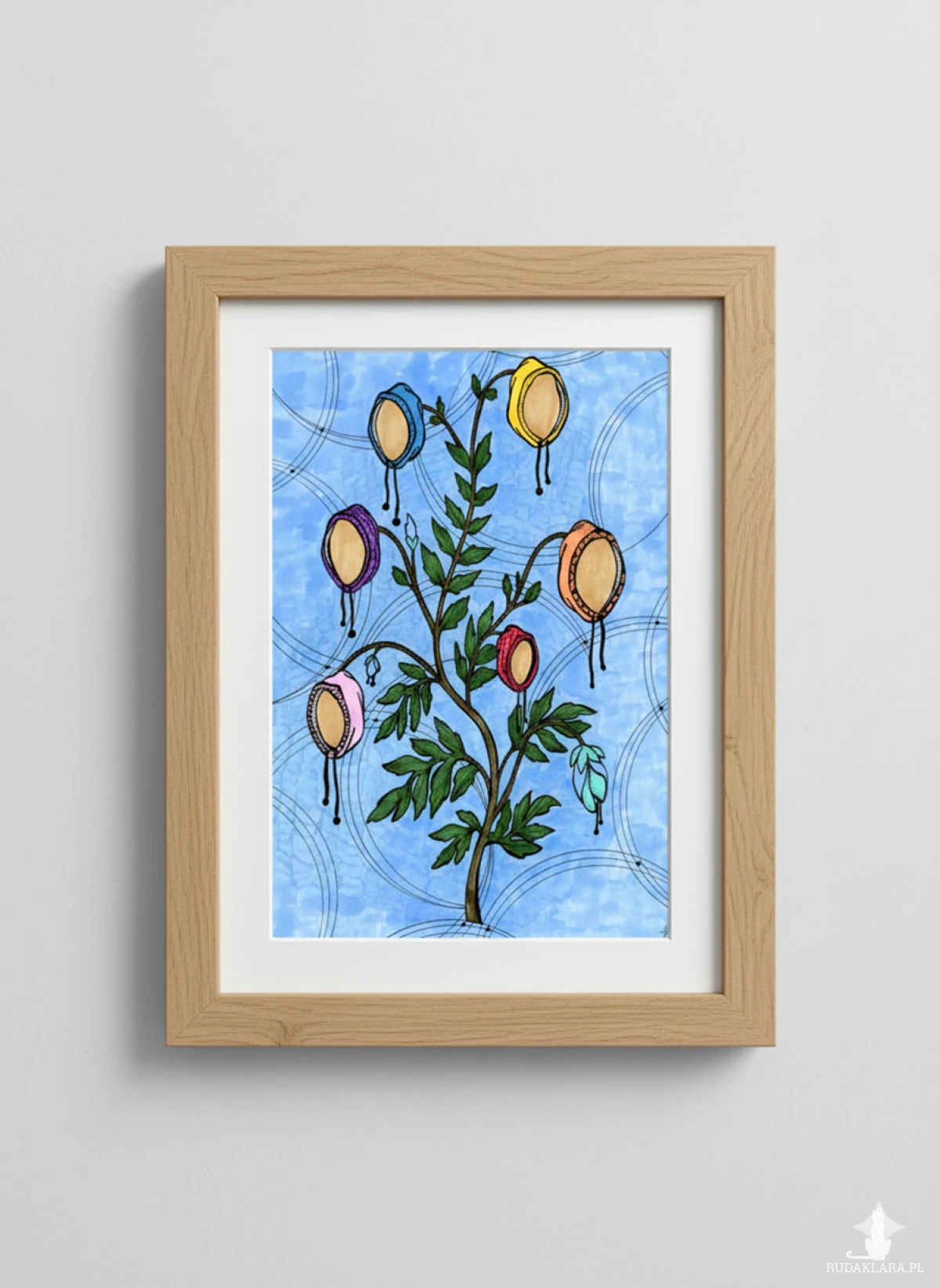 Najlepiej zaprezentuje się w jasnej, drewnianej ramie, która podkreśli jego delikatność.