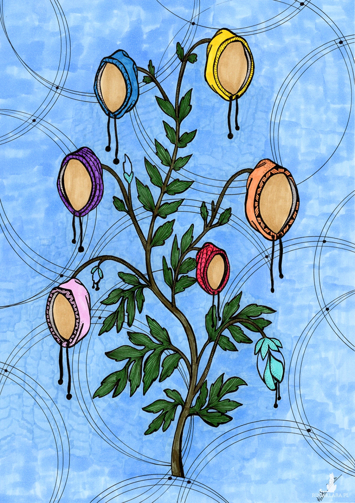 To najbardziej przytulna i pełna ciepła ilustracja w całej serii, nadająca roślinom niemal ludzkie cechy.