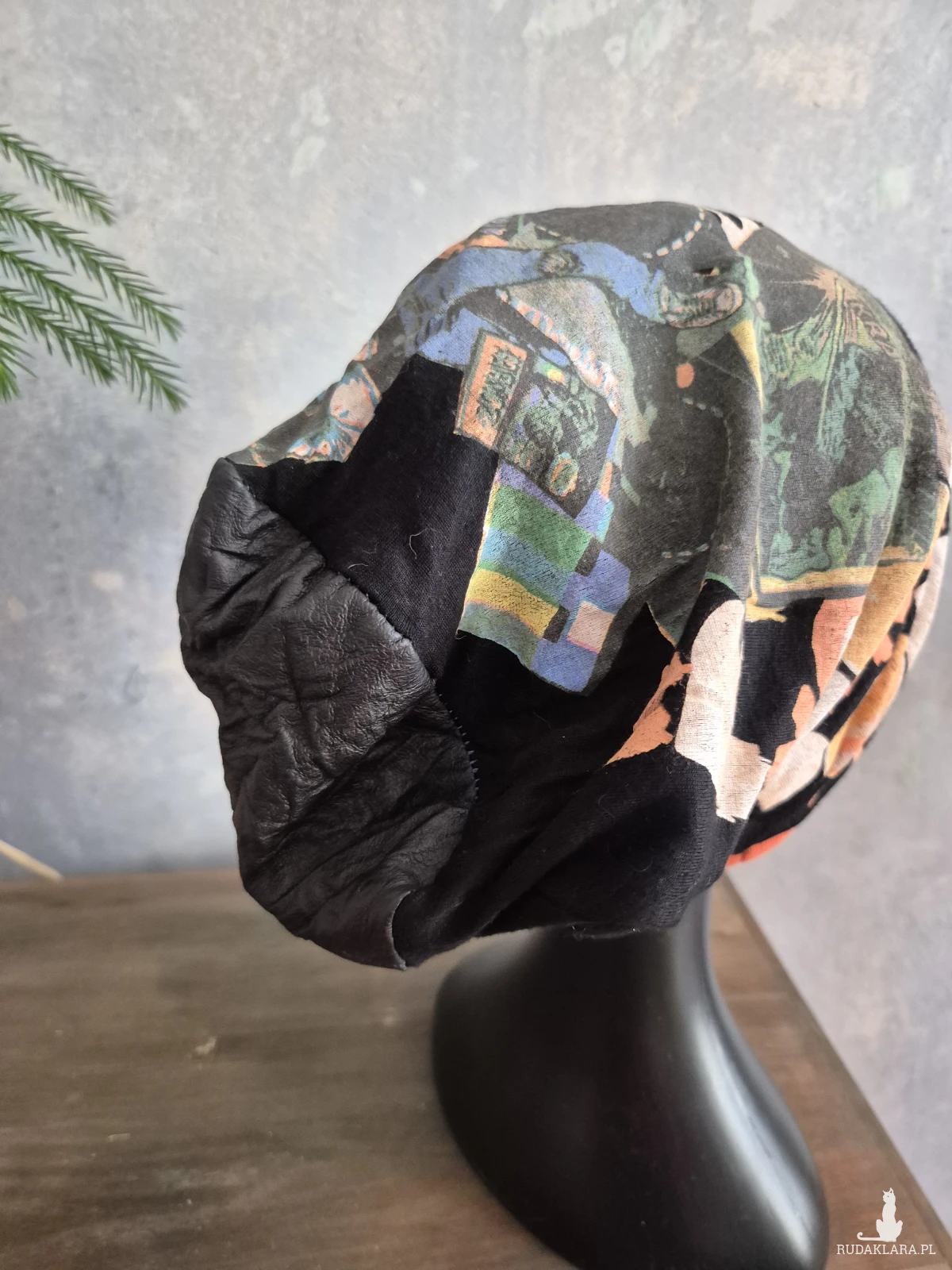 Czapka baza czarna na drugi kolorowe wykończenie pomarańczowe na podszewce Smerfetka rozmiar S na głowę 54 /55 cm Box z1