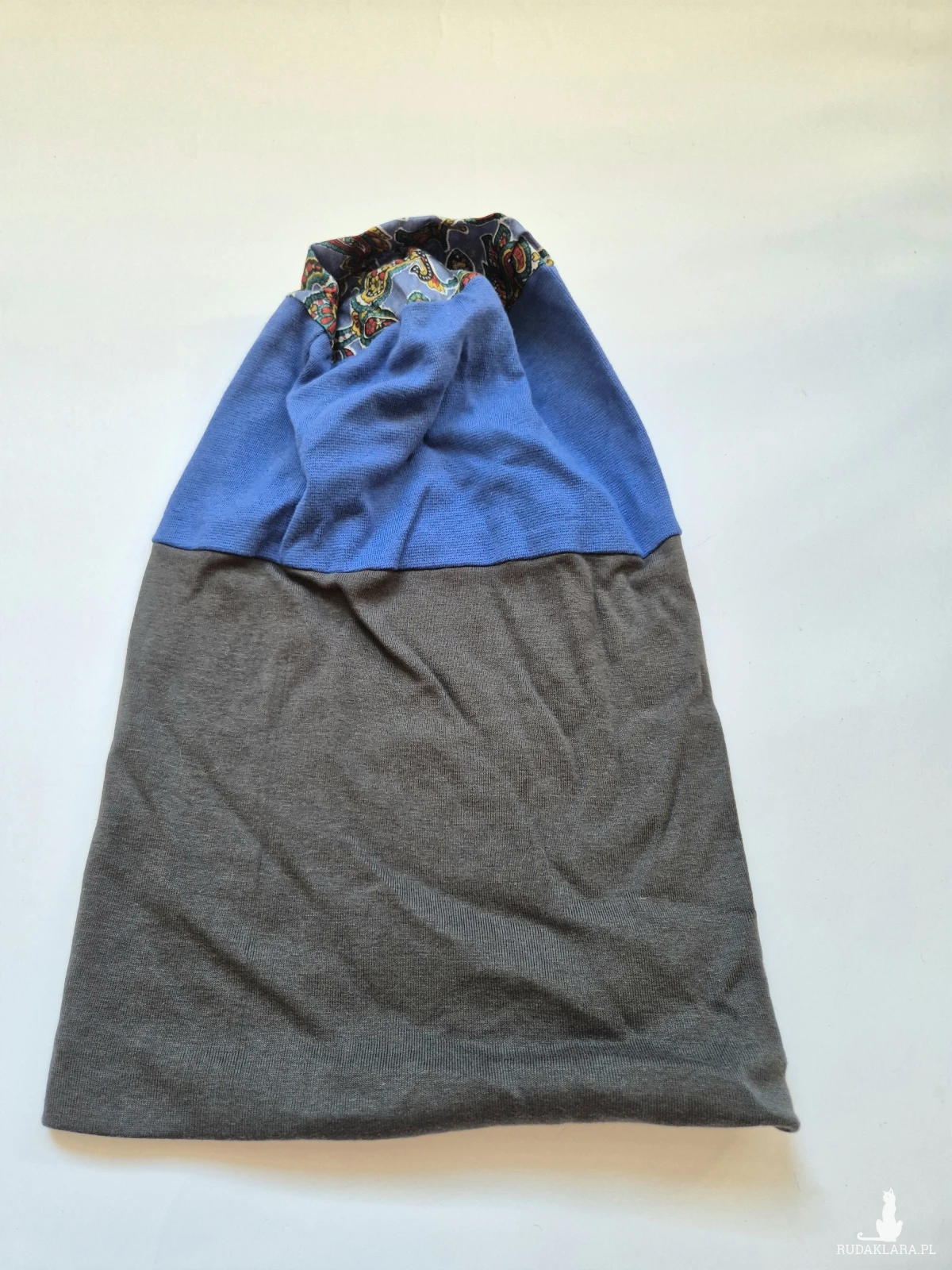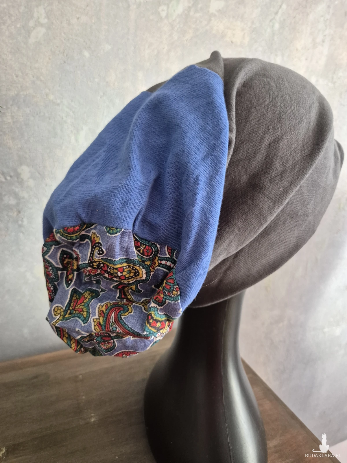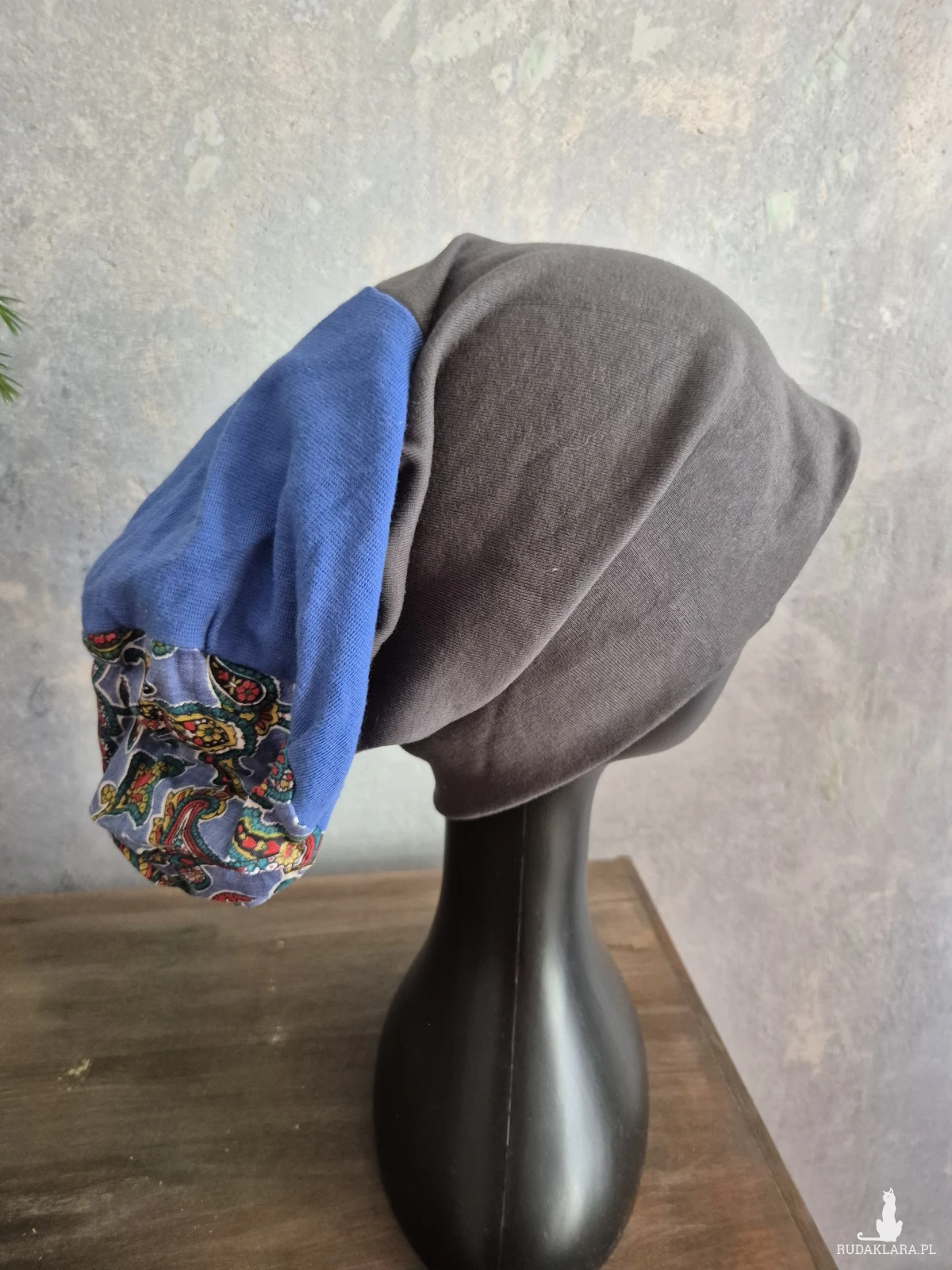 Czapka niebiesko-szare Długa Smerfetka na podszewce świetna na codzienne noszenie polecam boks Z1