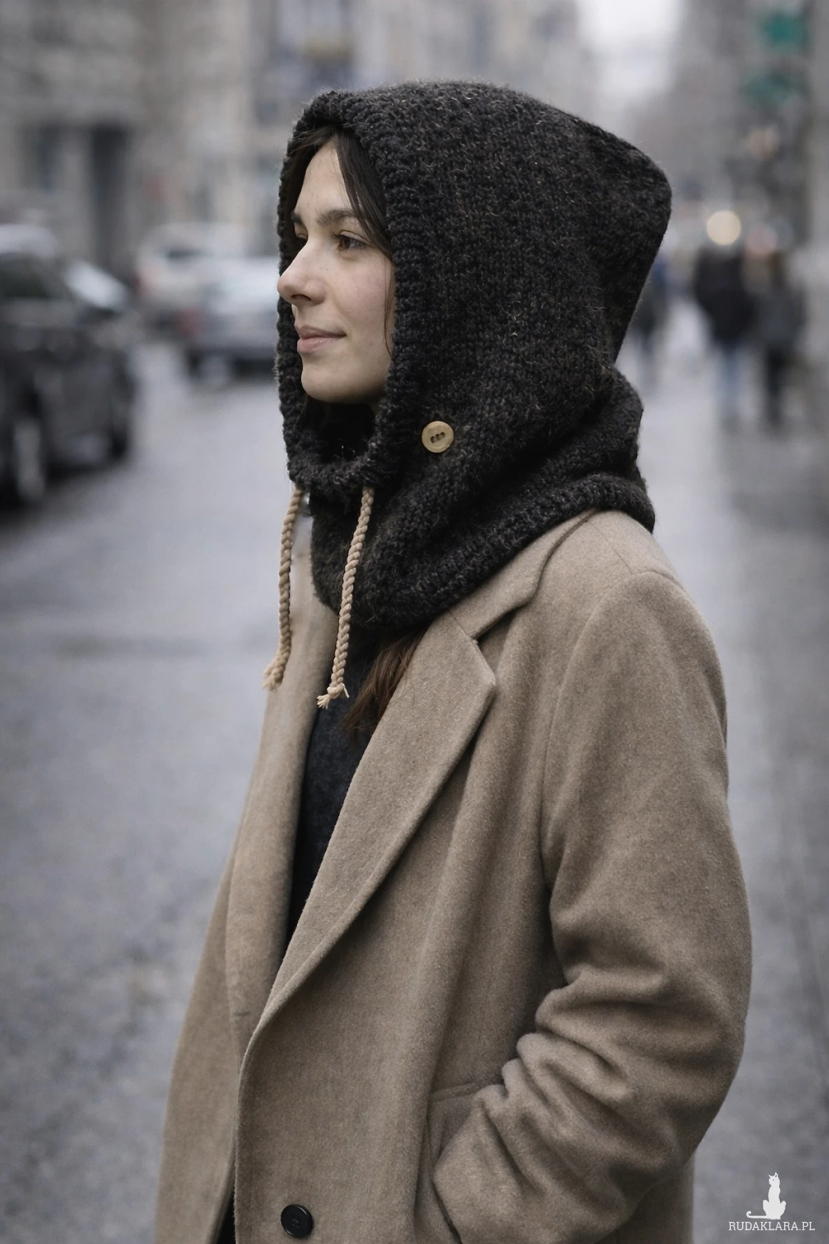 Luźny fason kapturo-komina zapewnia komfort noszenia bez uczucia ucisku.