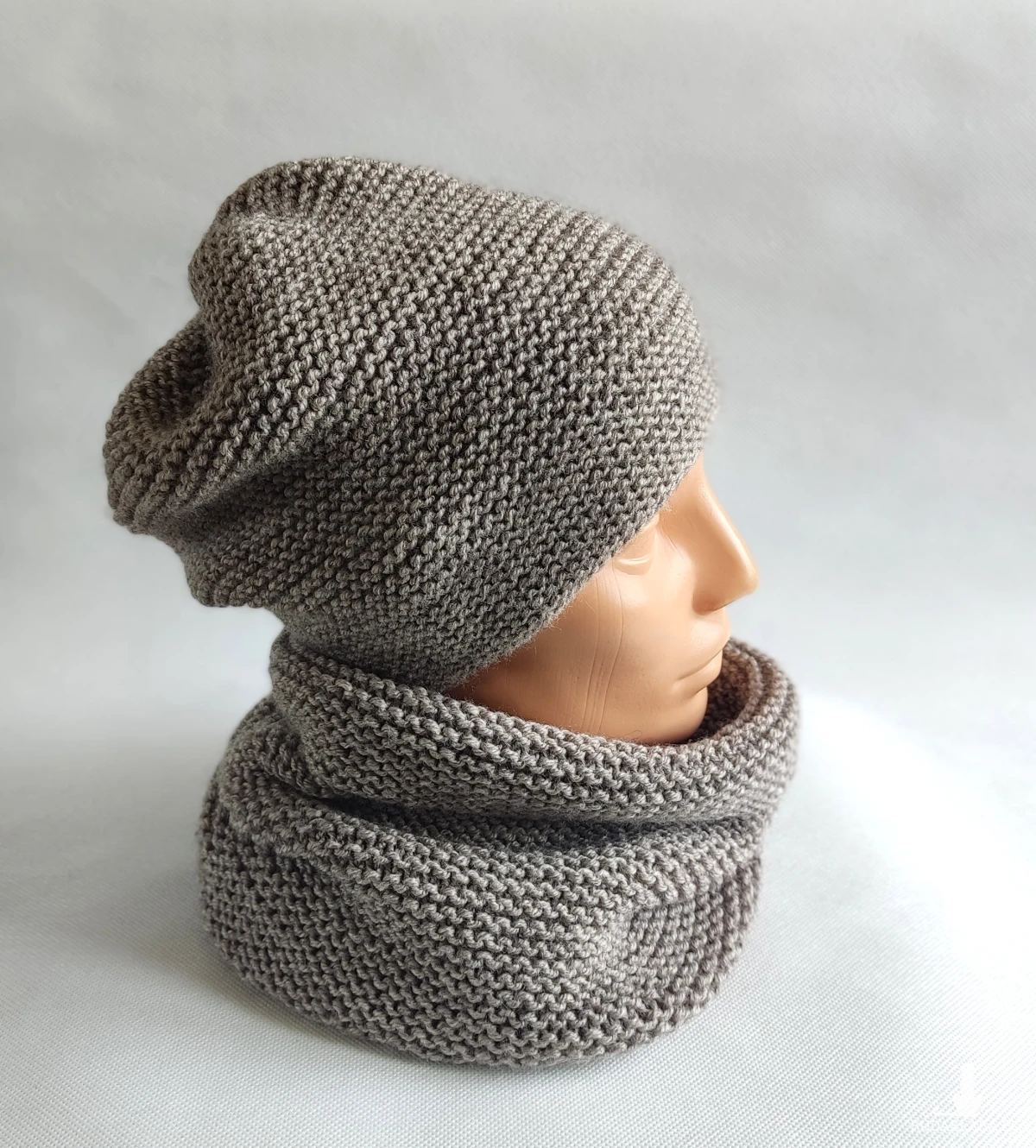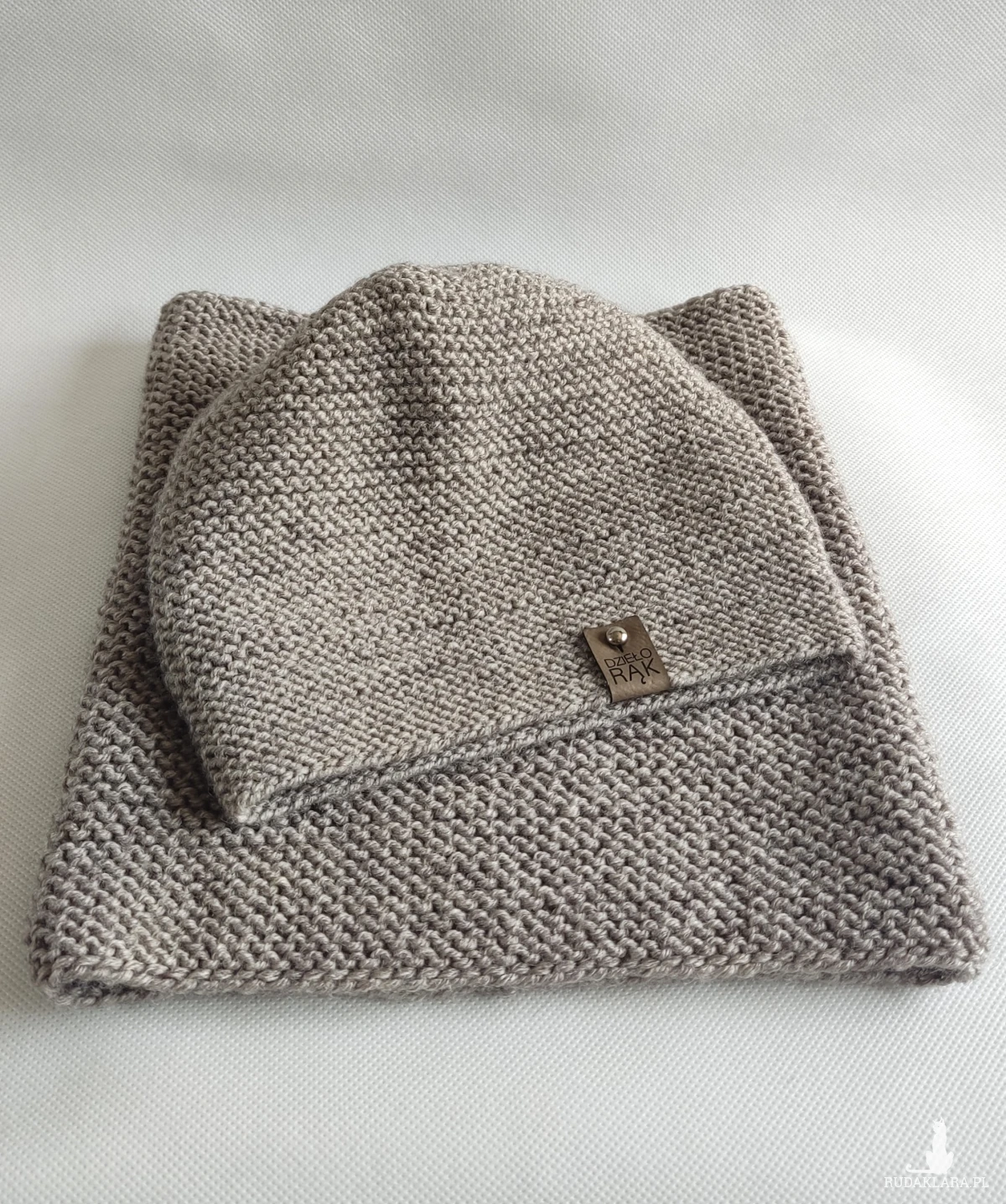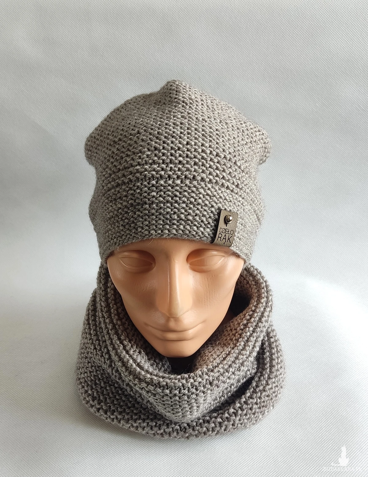 Komplet: czapka + komin, ręcznie robiony na drutach.