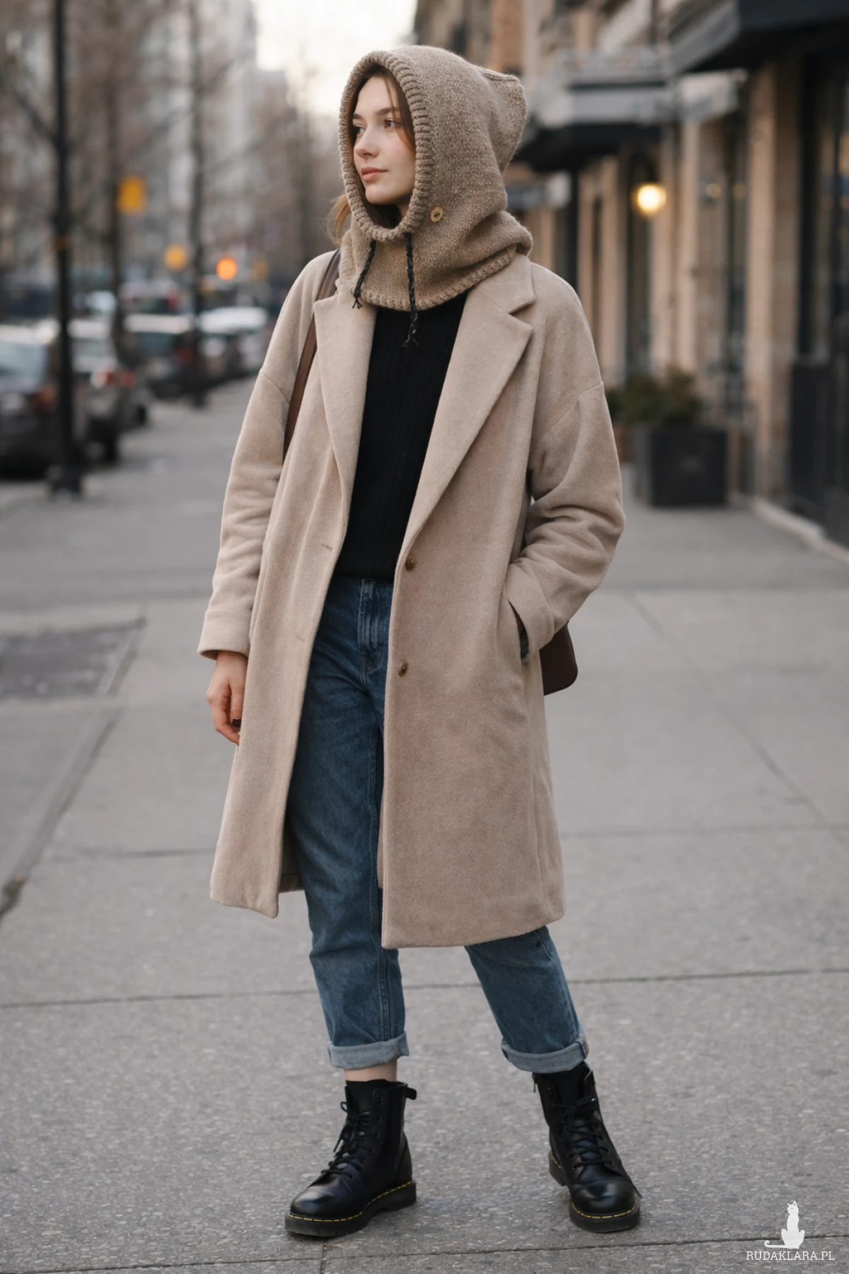 Luźny fason kapturo-komina zapewnia komfort noszenia bez uczucia ucisku.