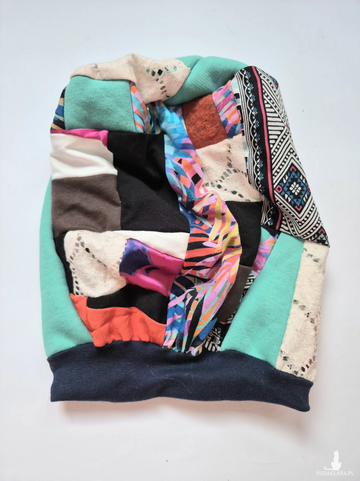 Czapka patchworkowa smerfetka na podszewce świetna na codzienne noszenie polecam boks d1