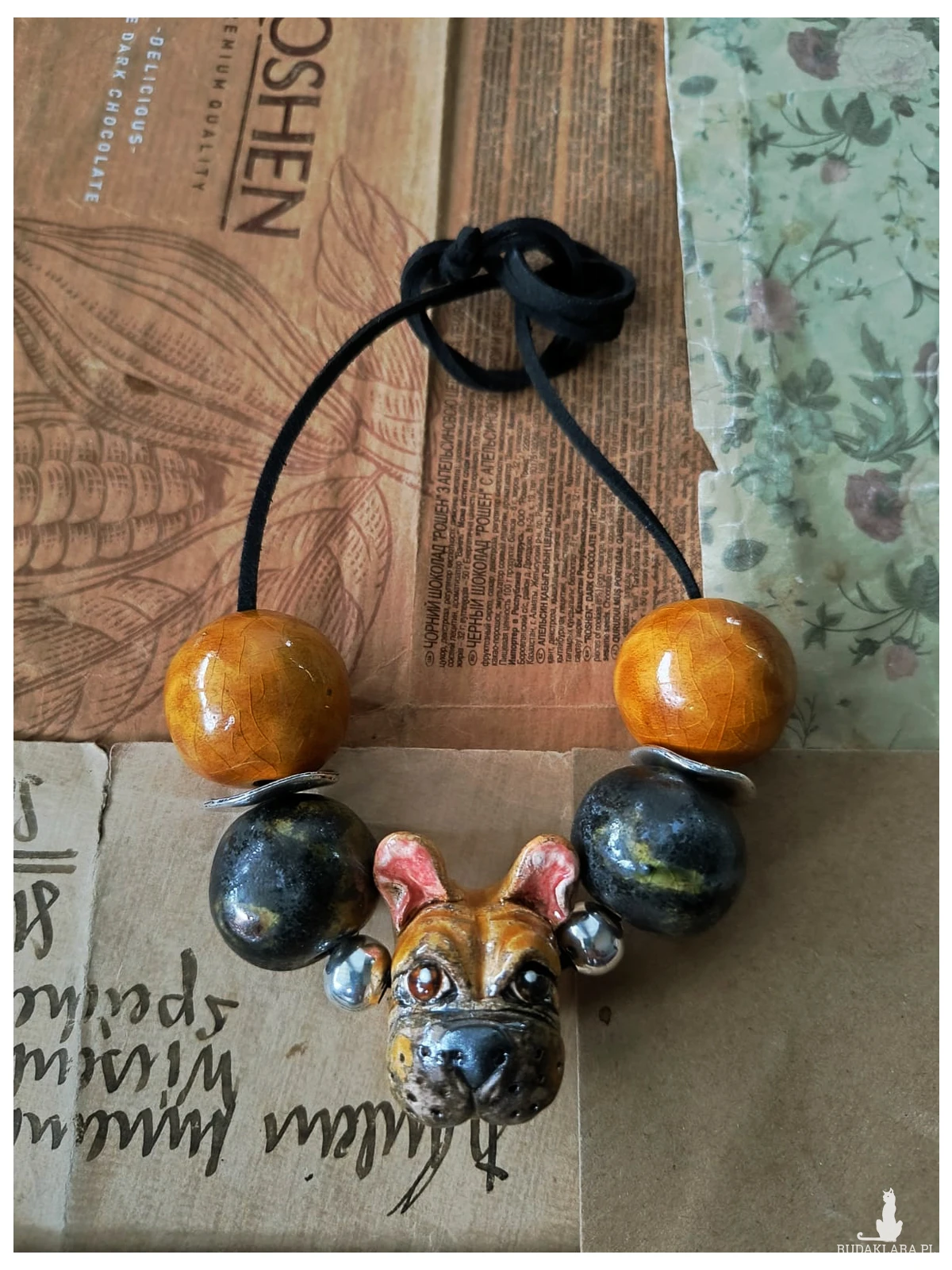 Ceramiczne korale wykonane z gliny szamotowej, wypalone na biskwit a następnie szkliwione w temperaturze 1260 stopni C. Długość ok 30 cm. Serdecznie polecam Paniom poszukującym nietuzinkowej biżuterii.