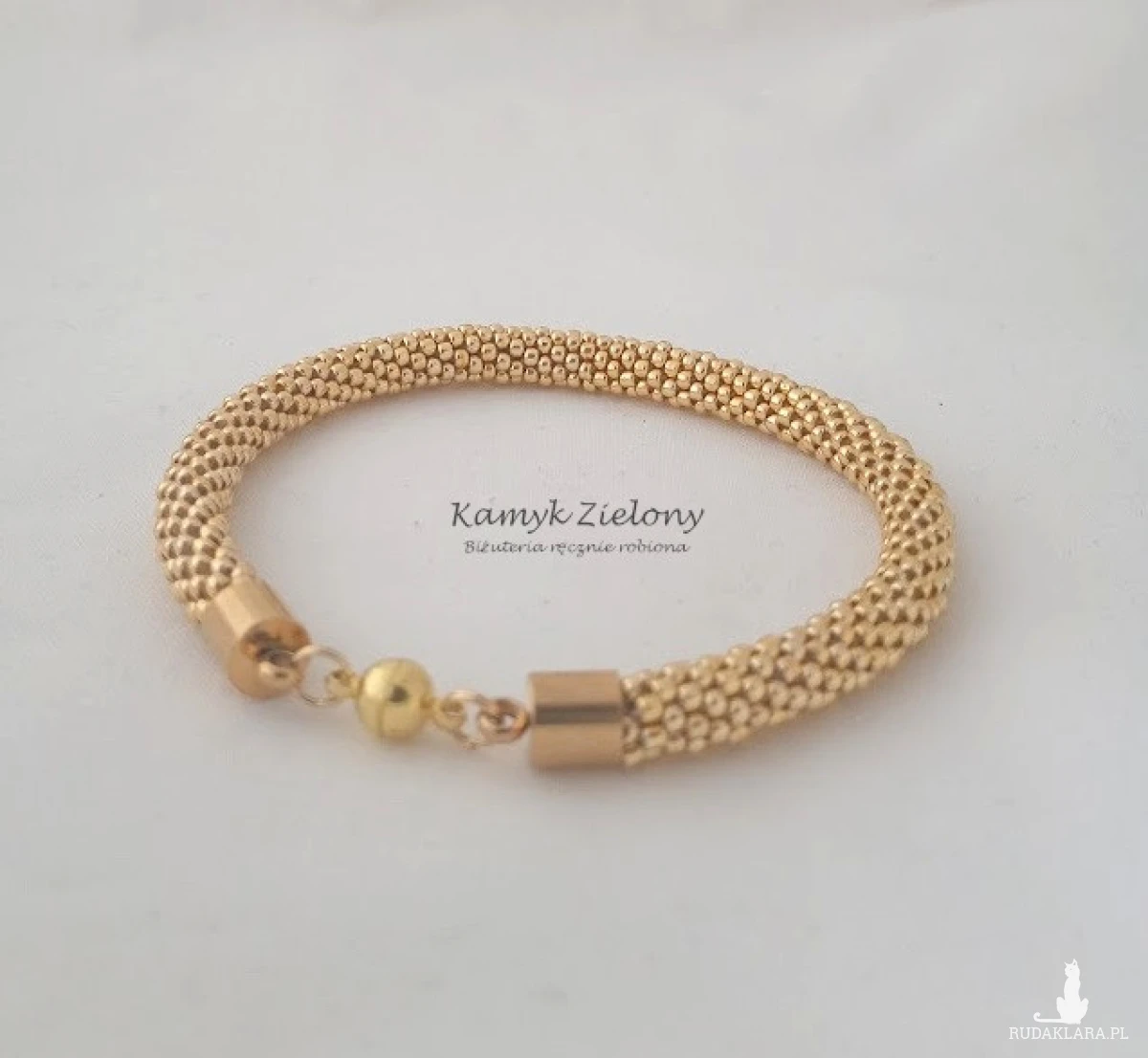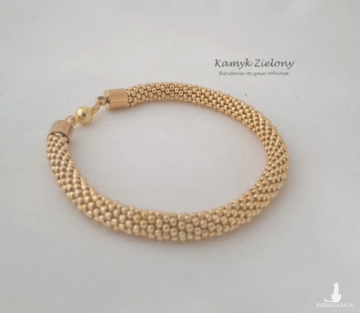Bransoletka wykonana ręcznie z wysokiej jakości szklanych koralików Toho. Do jej wykonania wykorzystane zostały najwyższej jakości koraliki z warstwą złotego koloru naniesioną metodą galwanizowania.