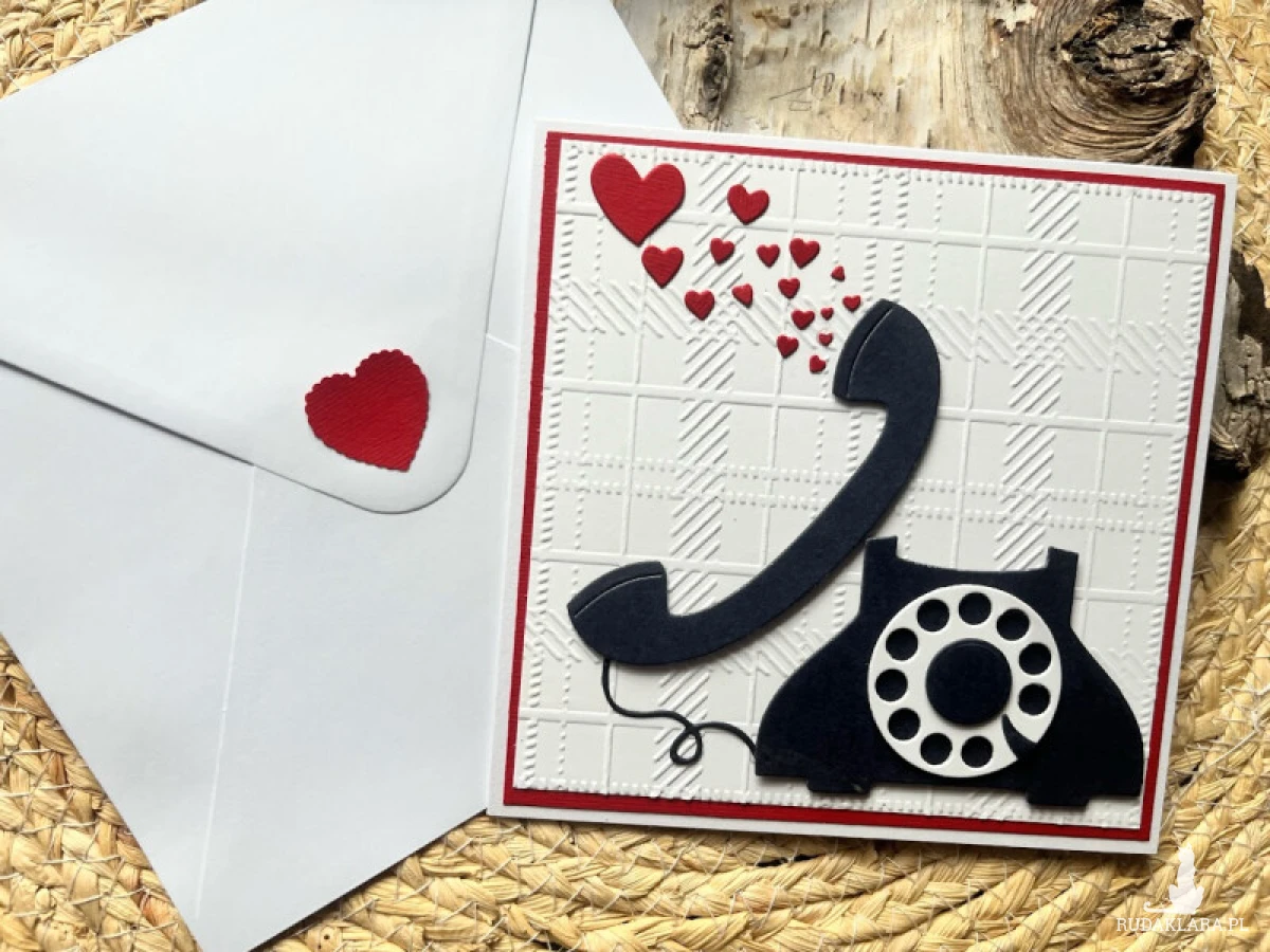 Kartka z okazji dnia walentynek. Powstała na bazie białego papieru do skrapbookingu w komplecie z kopertą.Kartka o wymiarze 13,5x13,5 a koperty 16x16. Wewnątrz kartki miejsce na wypisanie życzeń. W tej postaci kartka gotowa do natychmiastowej wysyłki.