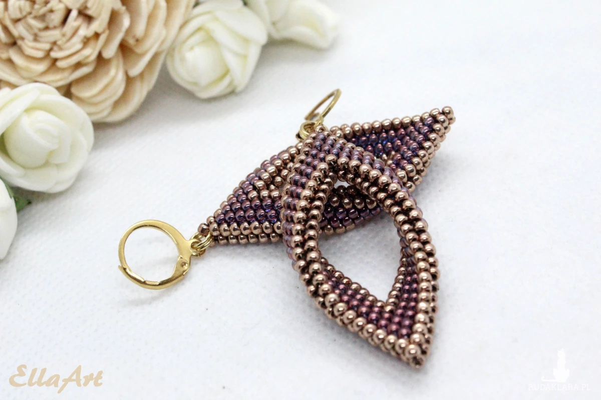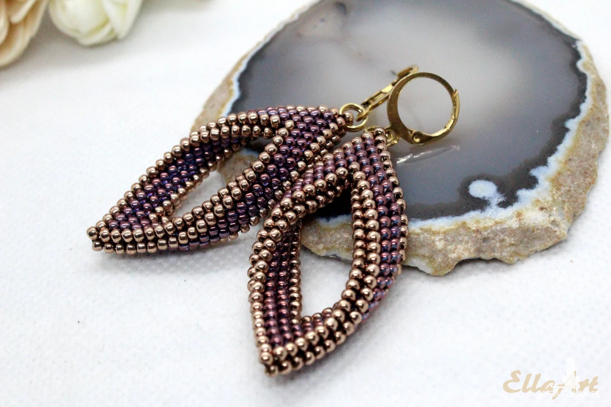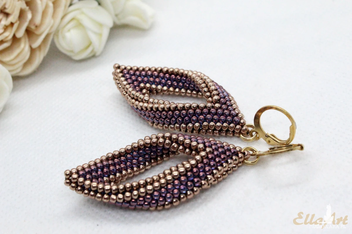 Kolczyki uszyte ręcznie z drobniutkich, japońskich koralików Toho w odcieniach fioletu i złota