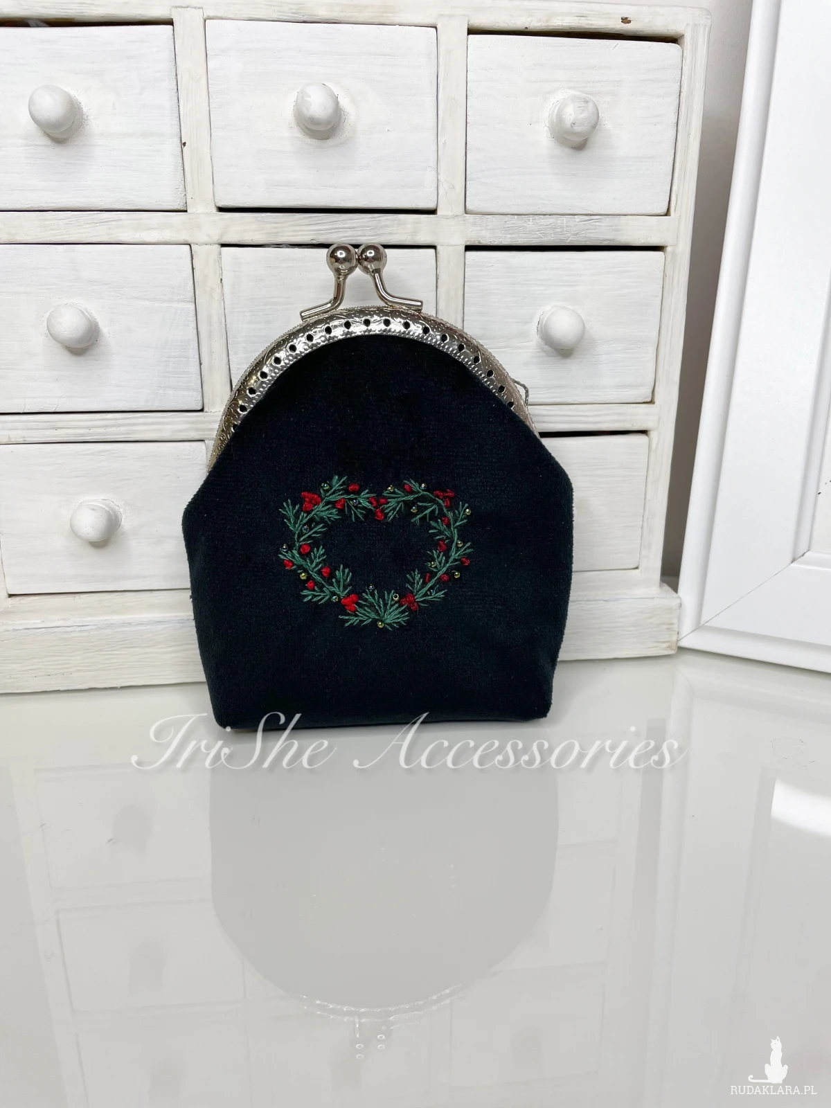 Welurowa portmonetka "Serce" uszyta i haftowana ręcznie. Portmonetka jest lekka, miękka i przyjemna w dotyku.