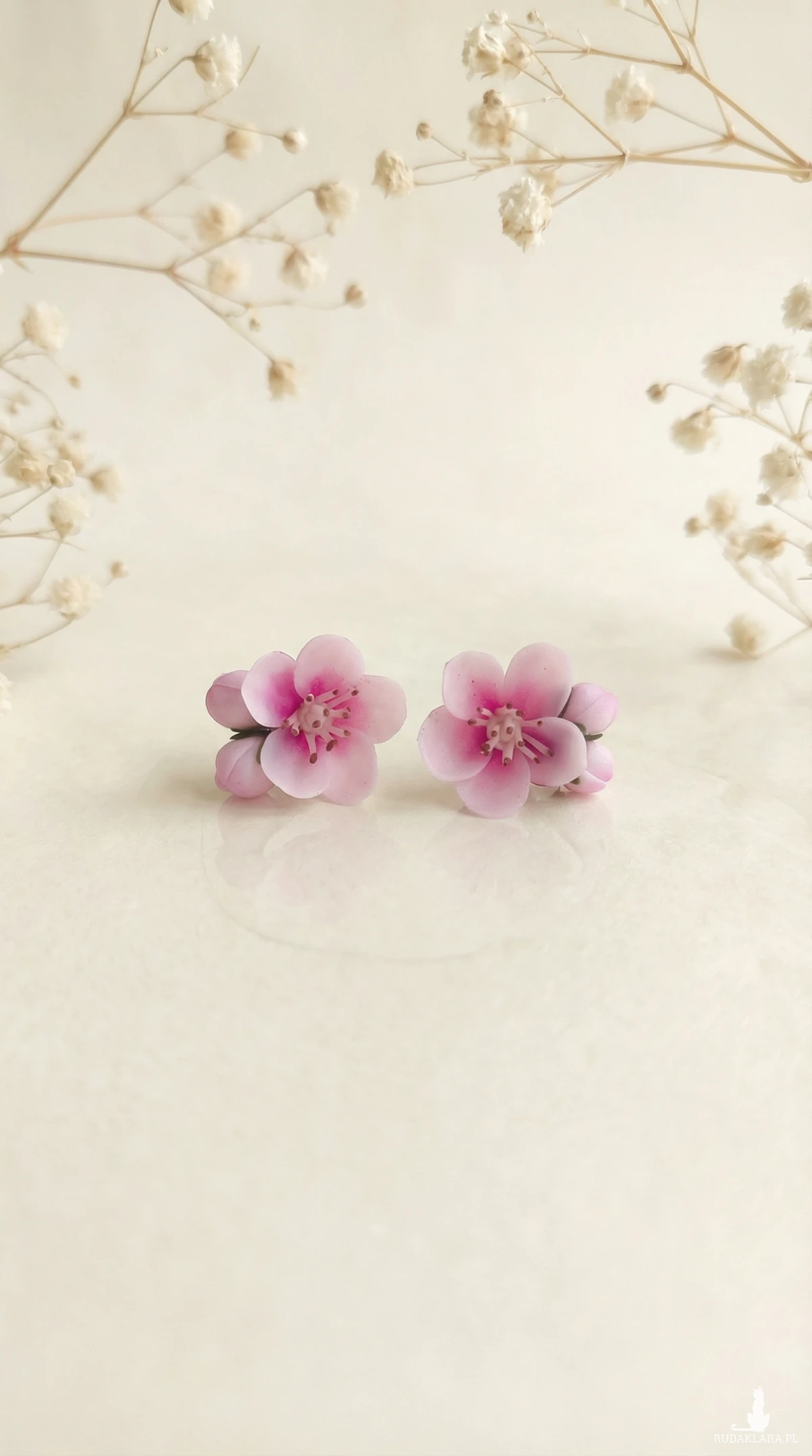 Ręcznie wykonane kolczyki z kwiatem jabłoni.