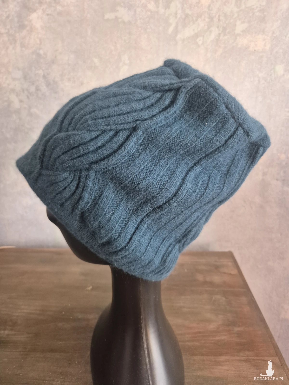 Czapka wełna ciemna zieleń