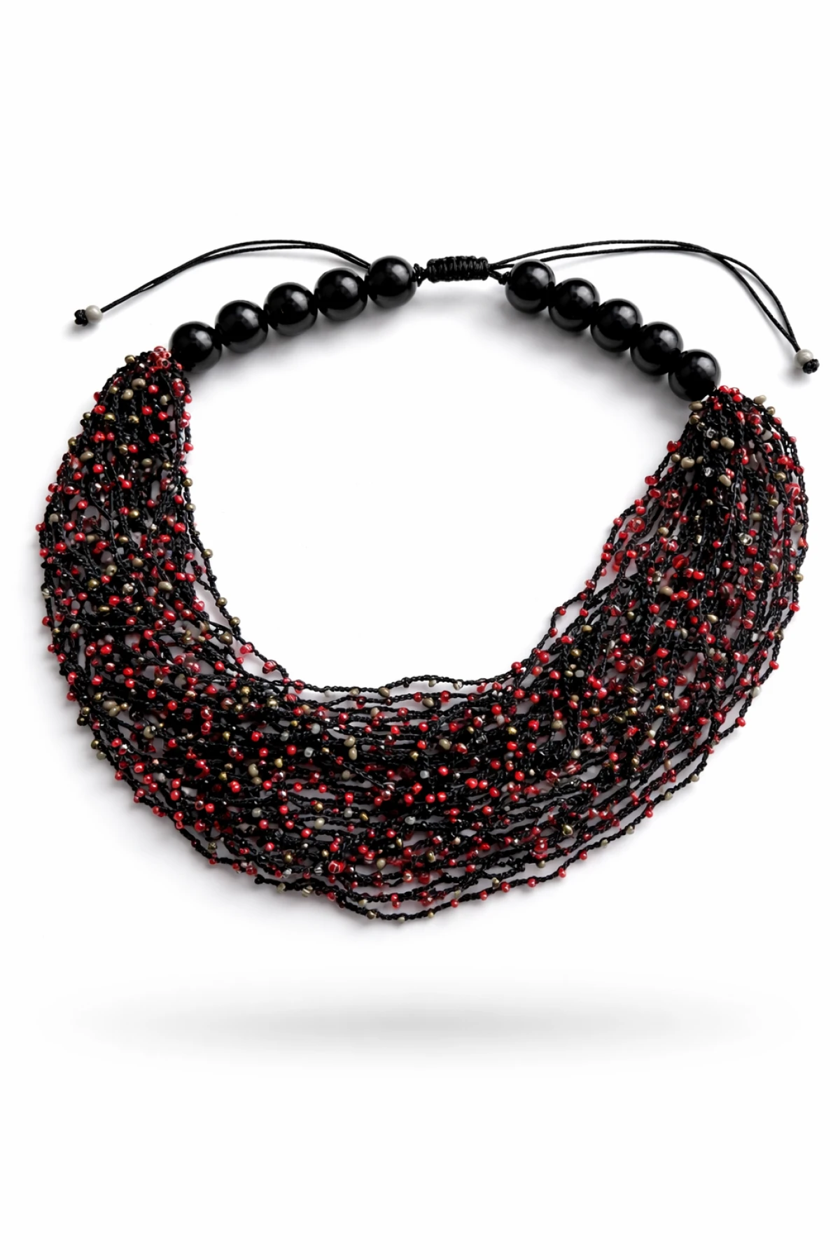 Naszyjnik Drobne Koraliki Mgiełka Czarne I Czerwone