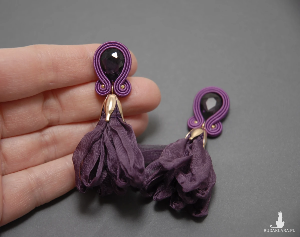 fioletowe kolczyki lub klipsy sutasz z kwiatkami