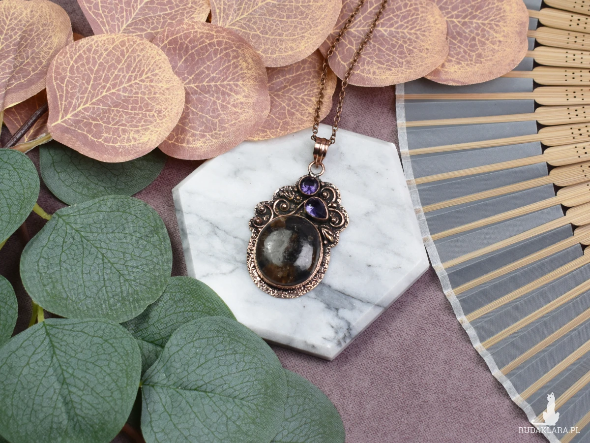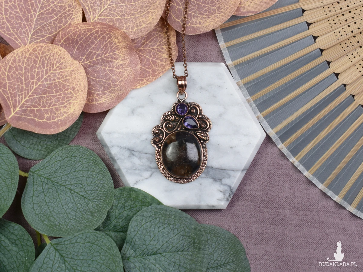 Wyjątkowy wisiorek z miedzi, ozdobiony pięknym jaspisem i ametystem, to nie tylko elegancki dodatek, lecz również źródło energetycznej harmonii. Jaspis, znany ze swojej stabilizującej mocy, dodaje pewności siebie, podczas gdy ametyst wprowadza spokój i równowagę. To nie tylko biżuteria, ale także talizman, który łączy estetykę z korzyściami dla zdrowia psychicznego. Nosząc ten wisiorek, otaczasz się nie tylko pięknem, ale także pozytywną energią kamieni, które podkreślają Twoją naturalną siłę i spokój.