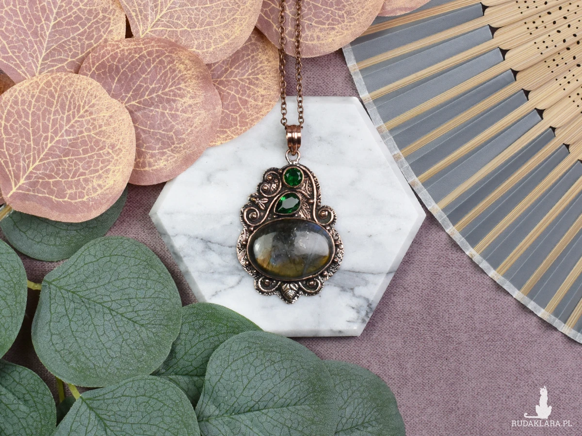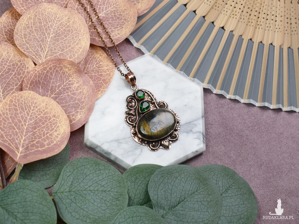 Piękny wisiorek z miedzi ozdobiony labradorytem i zielonym kwarcem to wyjątkowy dodatek do Twojej kolekcji biżuterii. Labradoryt, znany ze swoich tajemniczych refleksów, dodaje wisiorkowi subtelnego blasku, podkreślając elegancję designu. Dodatkowo, zielony kwarc wprowadza do Twojego życia energię harmonii i równowagi, co sprawia, że ten wisiorek nie tylko pięknie wygląda, ale również przynosi pozytywne wibracje.
