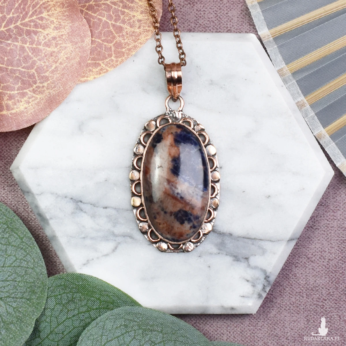 Elegancki wisiorek z miedzią i sodalitem to nie tylko piękny dodatek, ale także talizman korzystny dla ciała i umysłu. Sodalit, o intensywnym niebieskim kolorze, przypisuje się zdolność wspierania spokoju i klarowności myśli. Dodając temu wyjątkowemu wisiorkowi, emanującemu prostotą i stylem, możesz cieszyć się nie tylko estetycznym urokiem, ale także korzystnym wpływem kamienia na Twoje samopoczucie.
