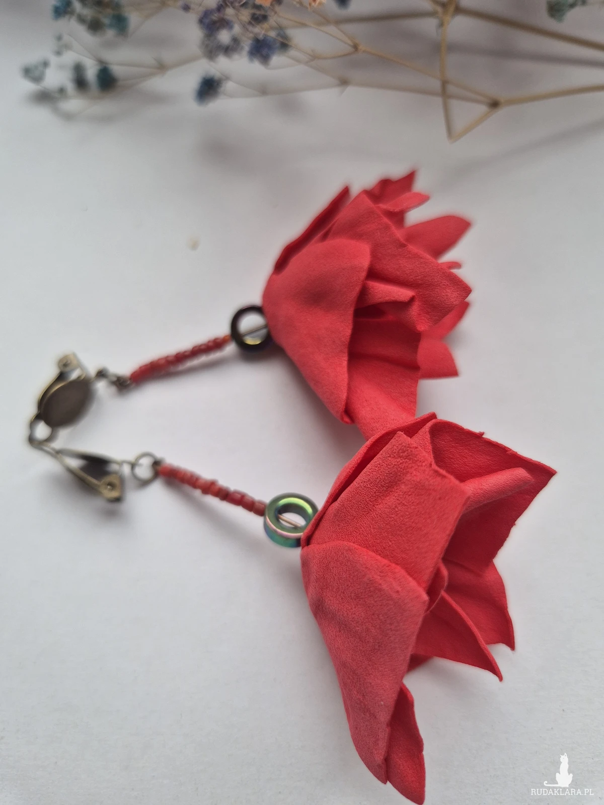 Klipsy czerwone kwiaty mogą być zmieniane na kolczyki,polecam