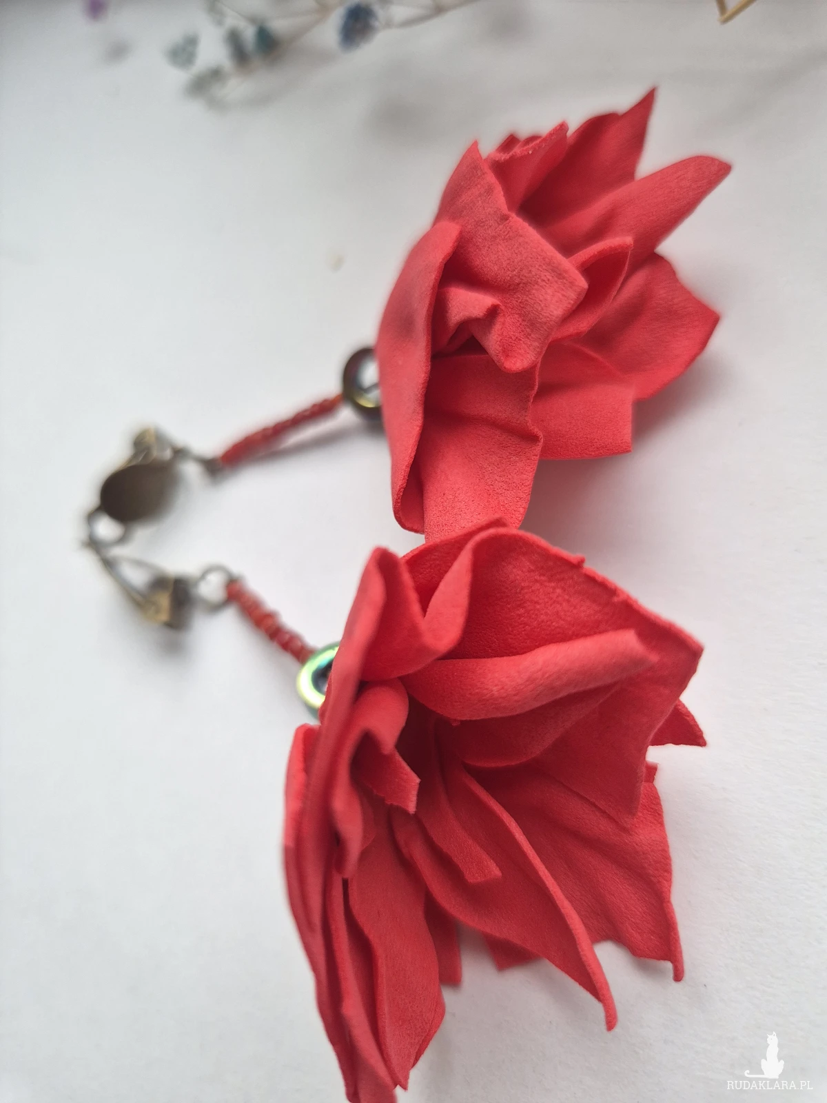 klipsy czerwone kwiaty