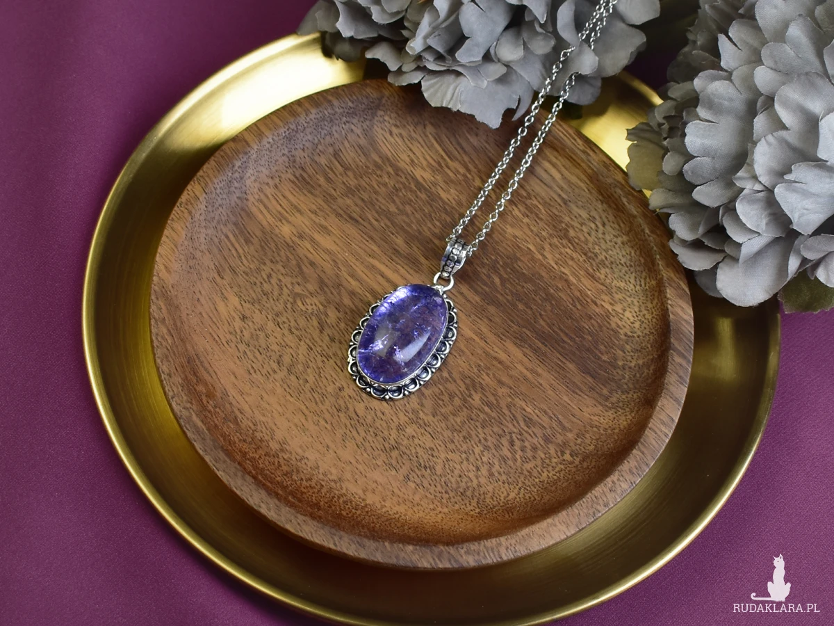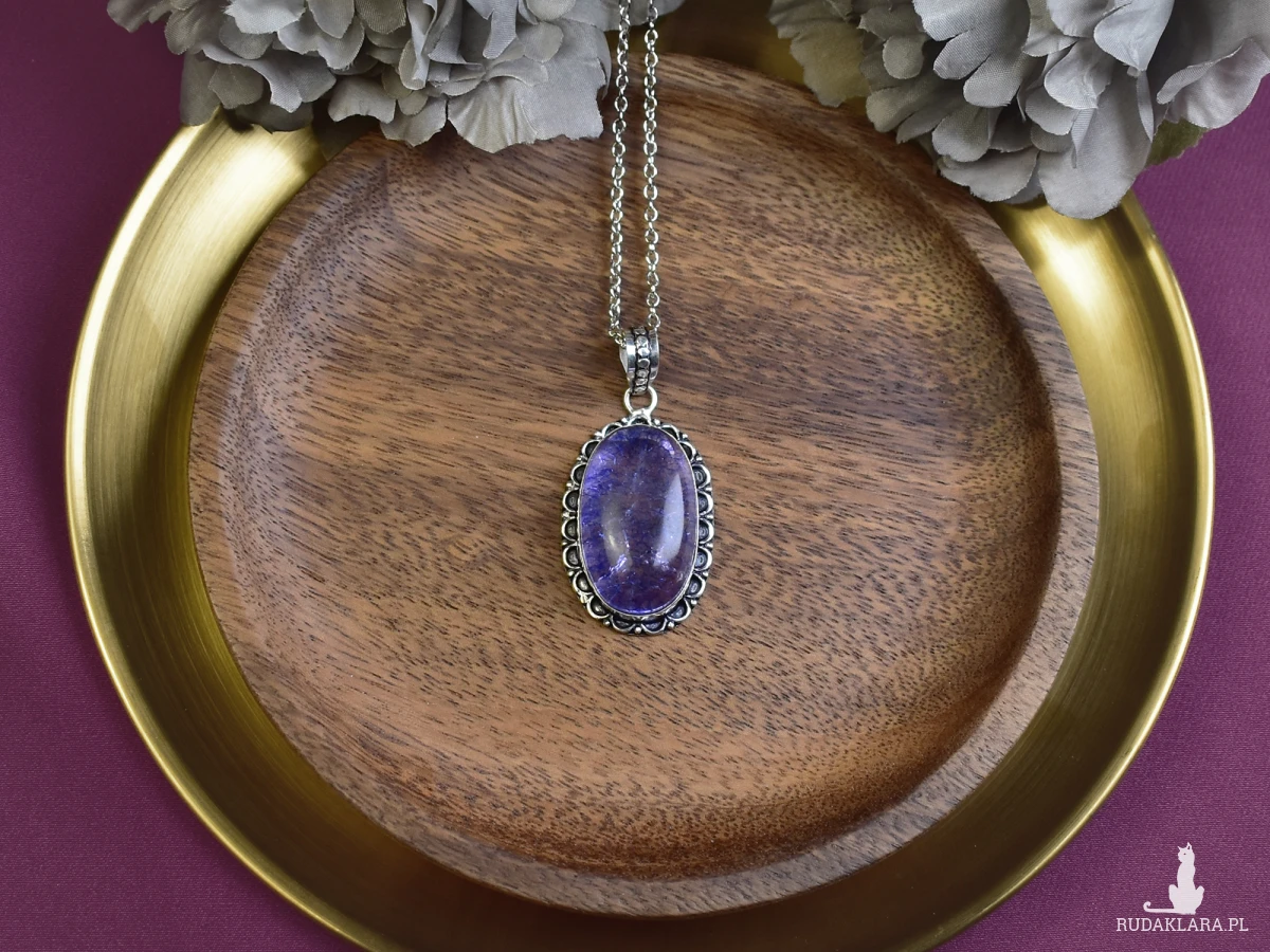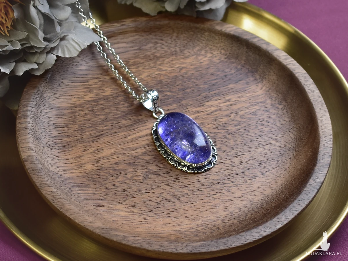 Wisiorek wykonany ręcznie z miedzi, pokryty srebrem. Głównym elementem jest kamień typu Snake Skin Quartz. Kamienie te charakteryzują się unikalnym wzorem przypominającym skórę węża. Każdy wisiorek jest niepowtarzalny ze względu na naturalne różnice w strukturze kamienia. Idealny jako wyjątkowy dodatek do codziennych stylizacji.