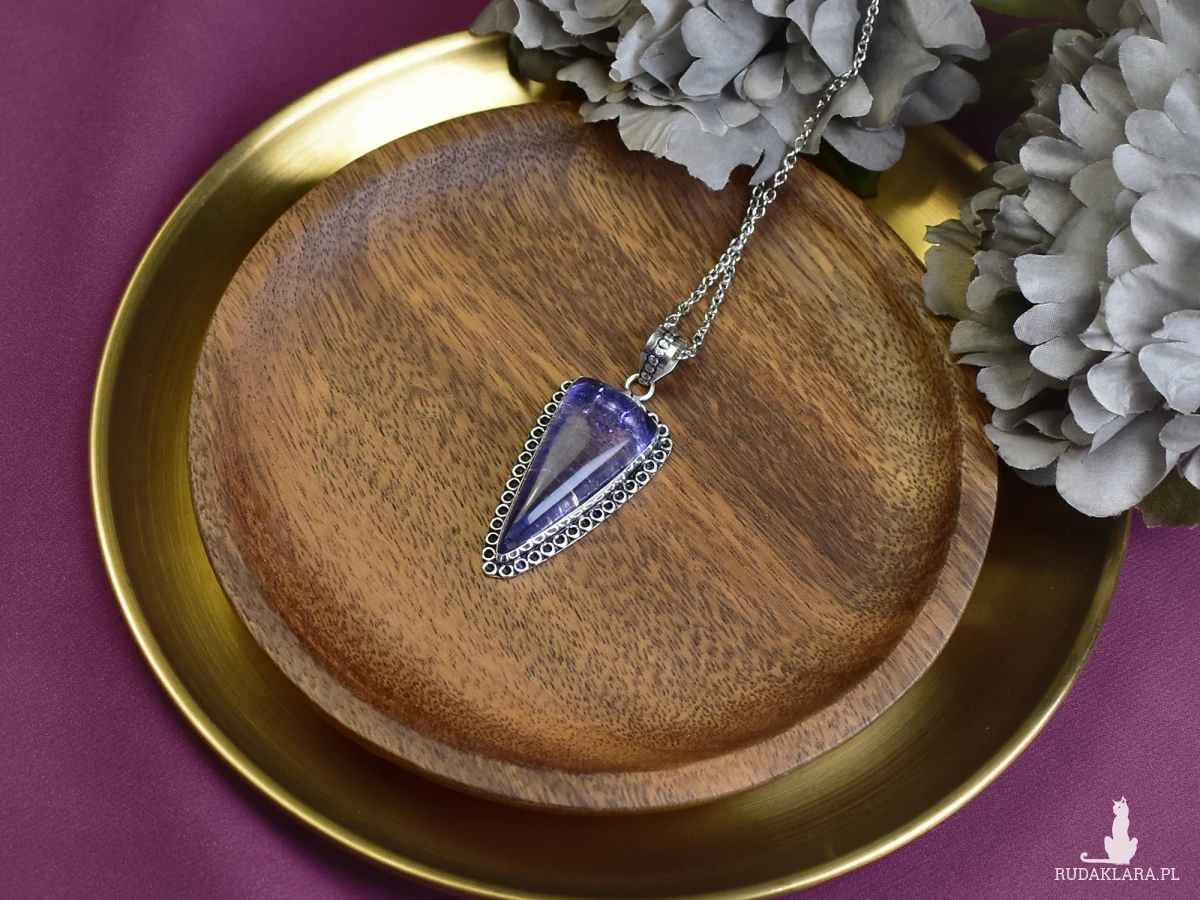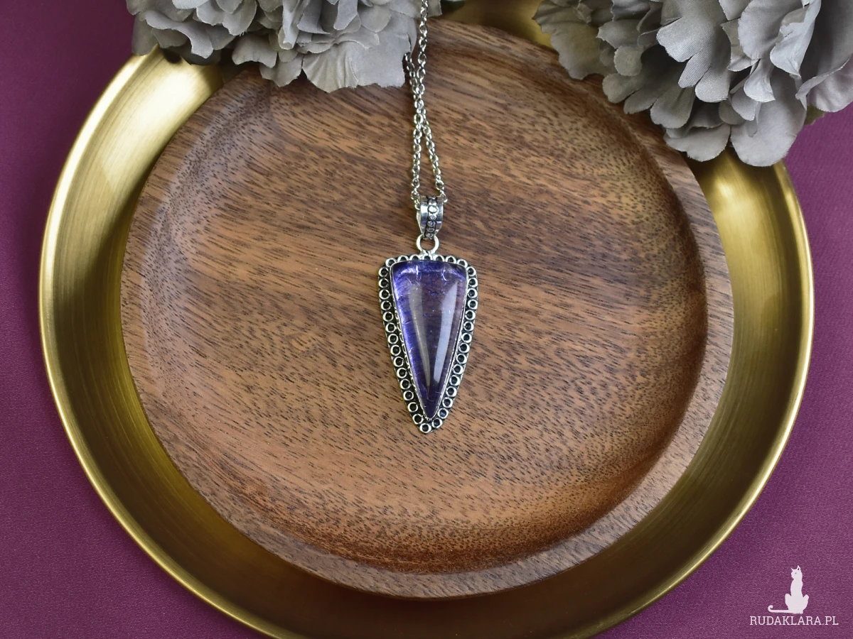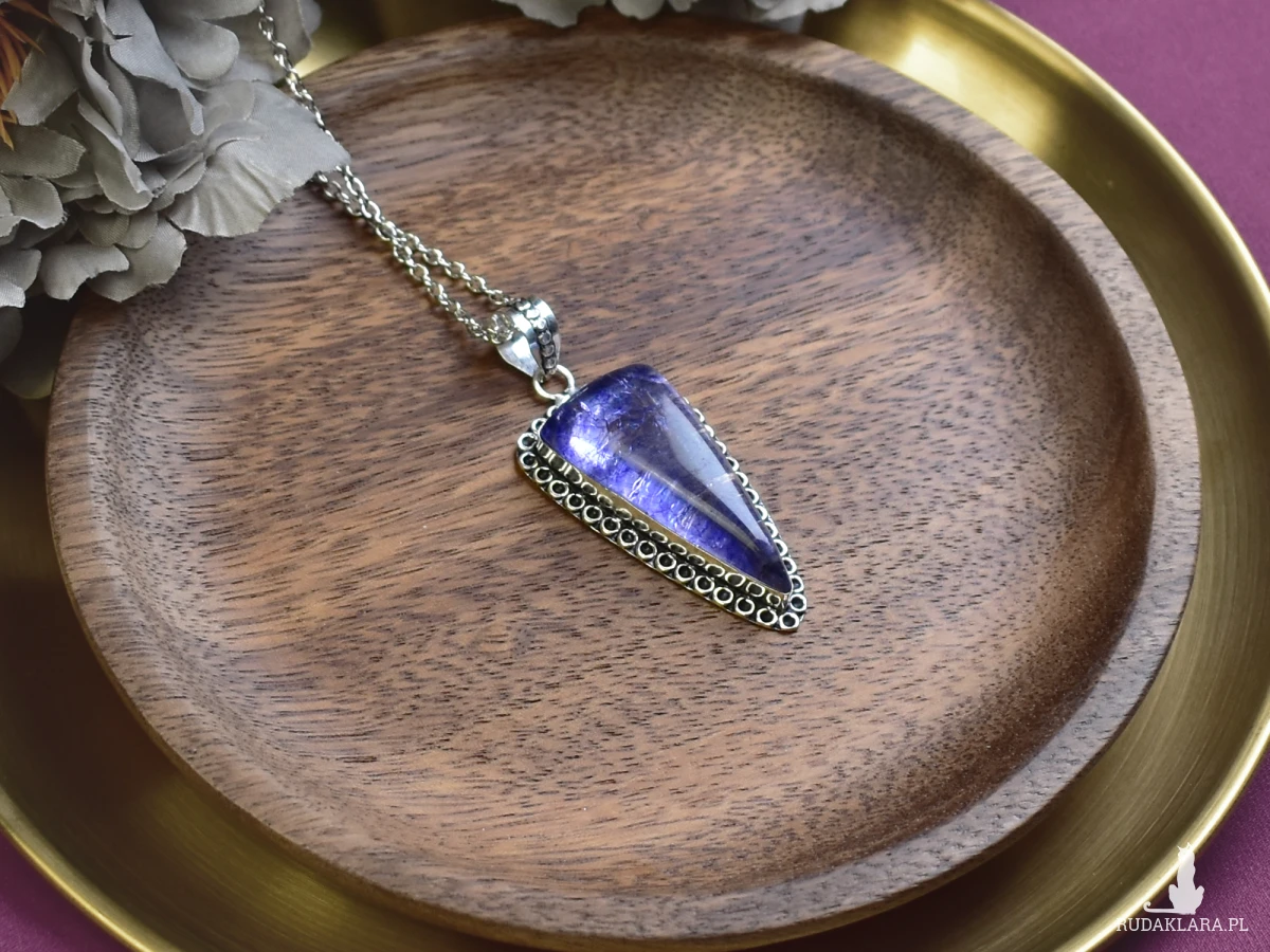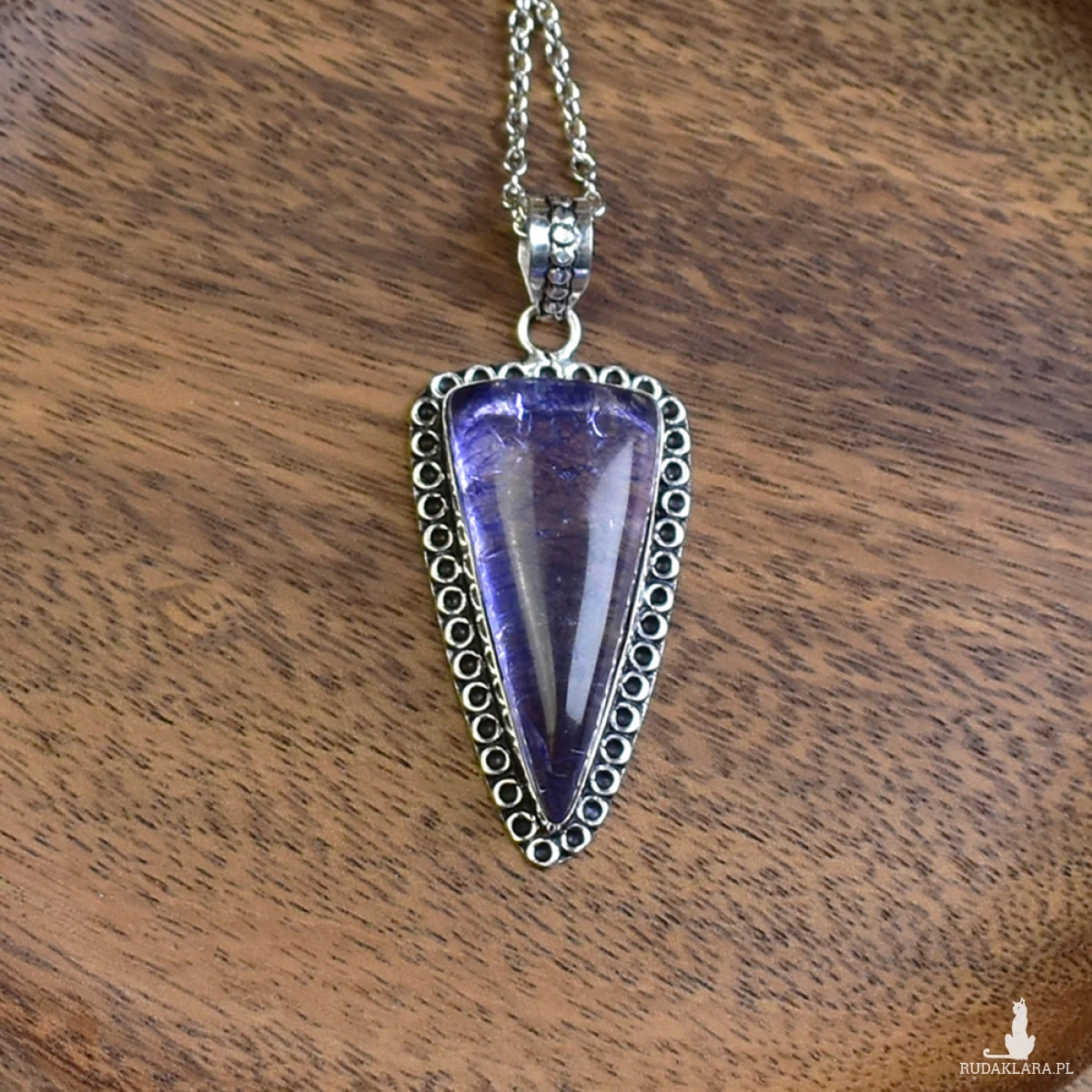 Wisiorek wykonany ręcznie z miedzi, pokryty srebrem. Głównym elementem jest kamień typu Snake Skin Quartz. Kamienie te charakteryzują się unikalnym wzorem przypominającym skórę węża. Każdy wisiorek jest niepowtarzalny ze względu na naturalne różnice w strukturze kamienia. Idealny jako wyjątkowy dodatek do codziennych stylizacji.