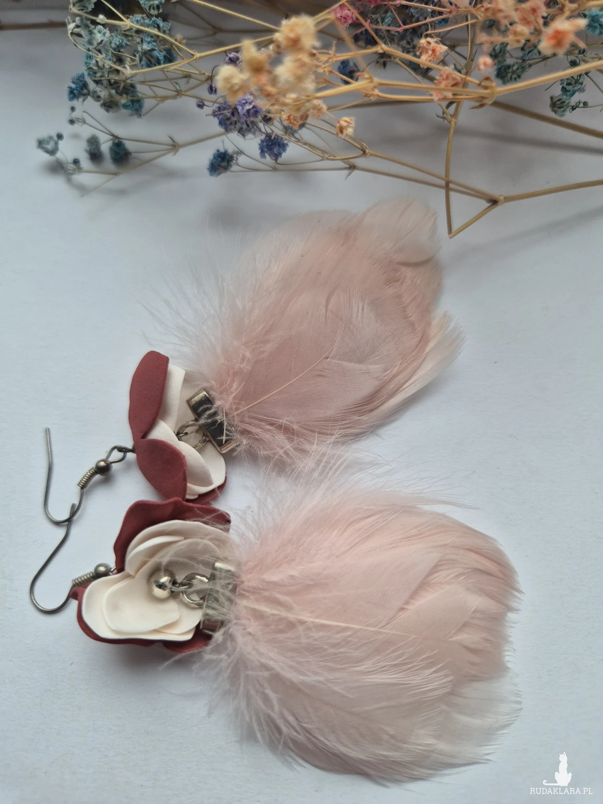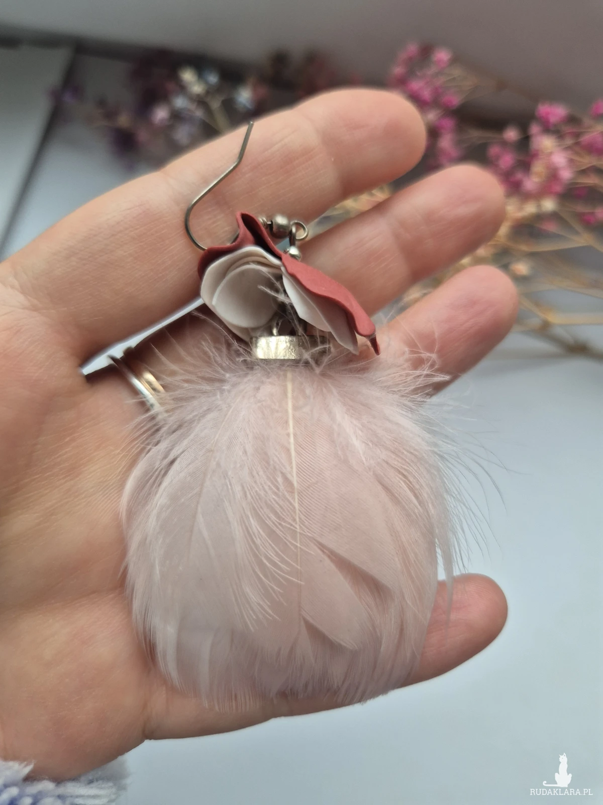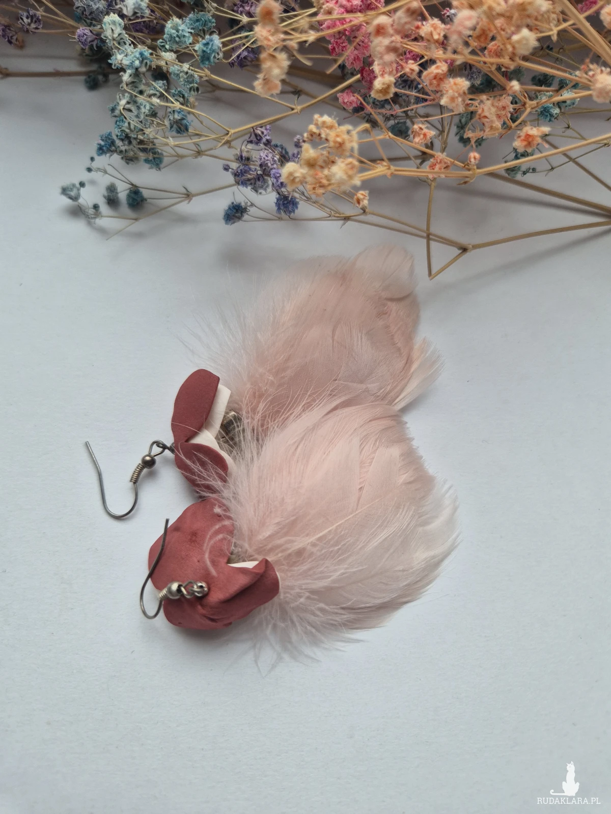 Kolczyki pastelowe pióra średniej wielkości wykonane w pojedynczym egzemplarzu rękodzieło
