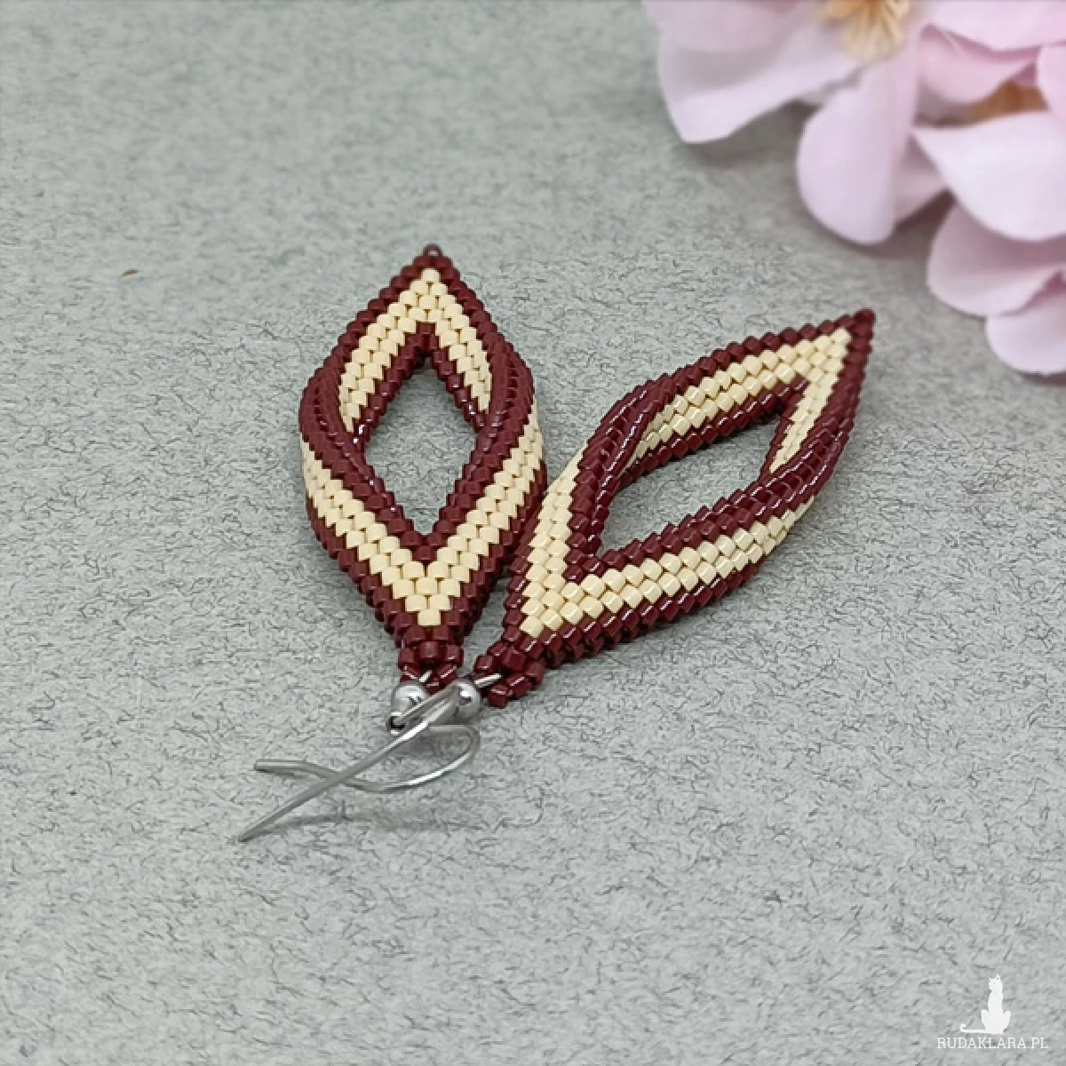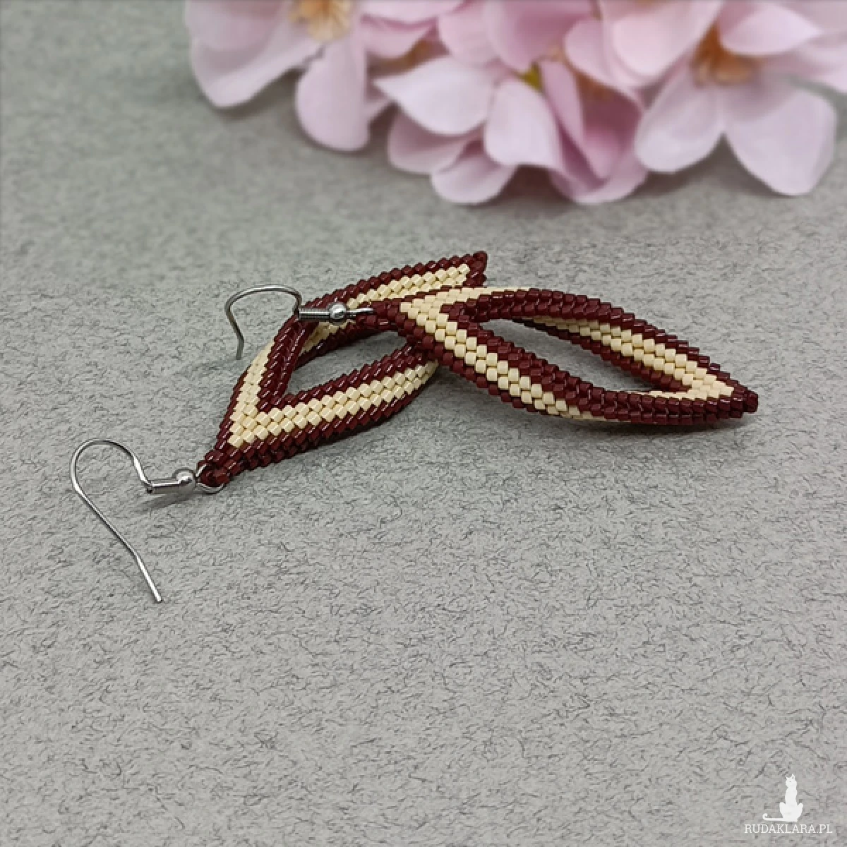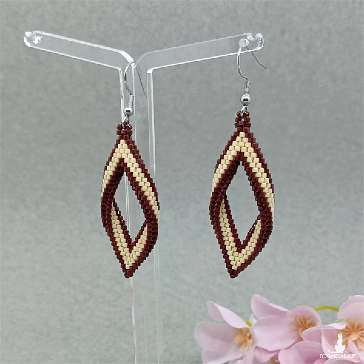 Eleganckie, wiszące kolczyki zostały wykonane ręcznie z drobnych japońskich koralików Miyuki.