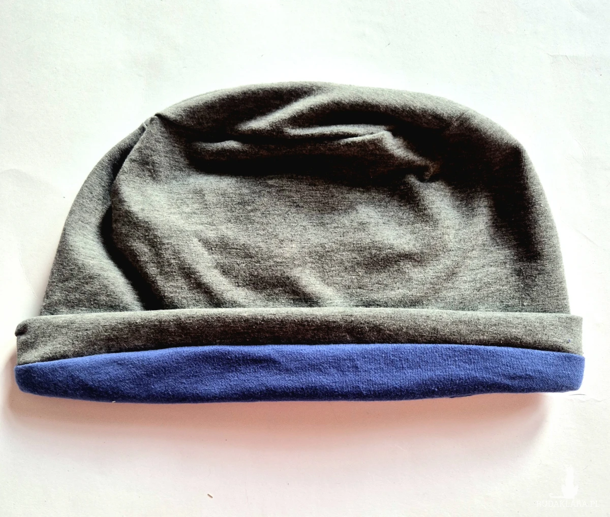 Czapka męska unisex na podszewce rozmiar uniwersalny można ją podwinąć i wtedy jest króciutka z widoczną podszewką , można ją też  nosić jako smerfetkę polecam boks o1