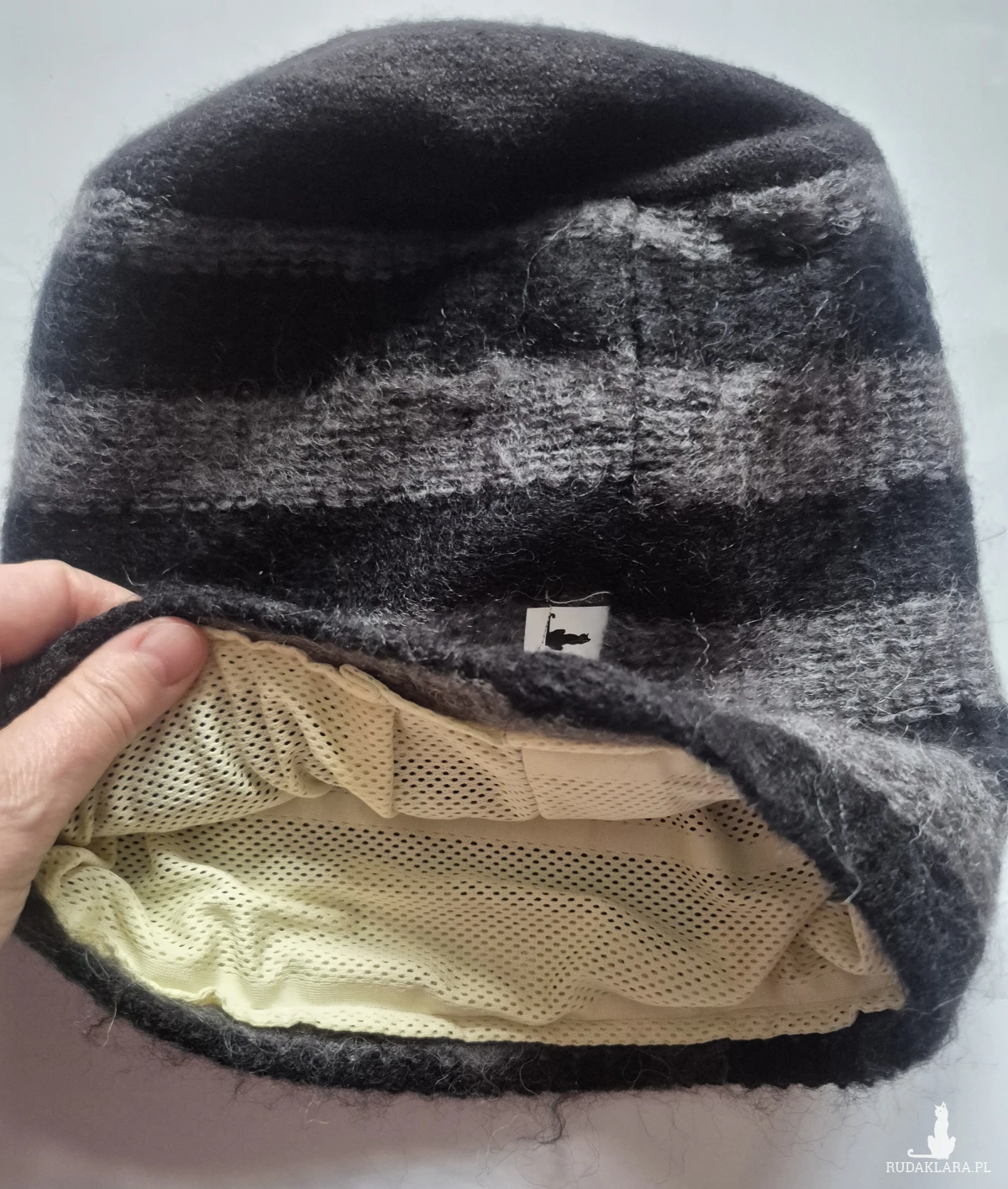 Bardzo zgrabna czapka w rozmiarze M na podszewce szaro-czarna w paski obwód głowy 55 /56 cm polecam Box o 1