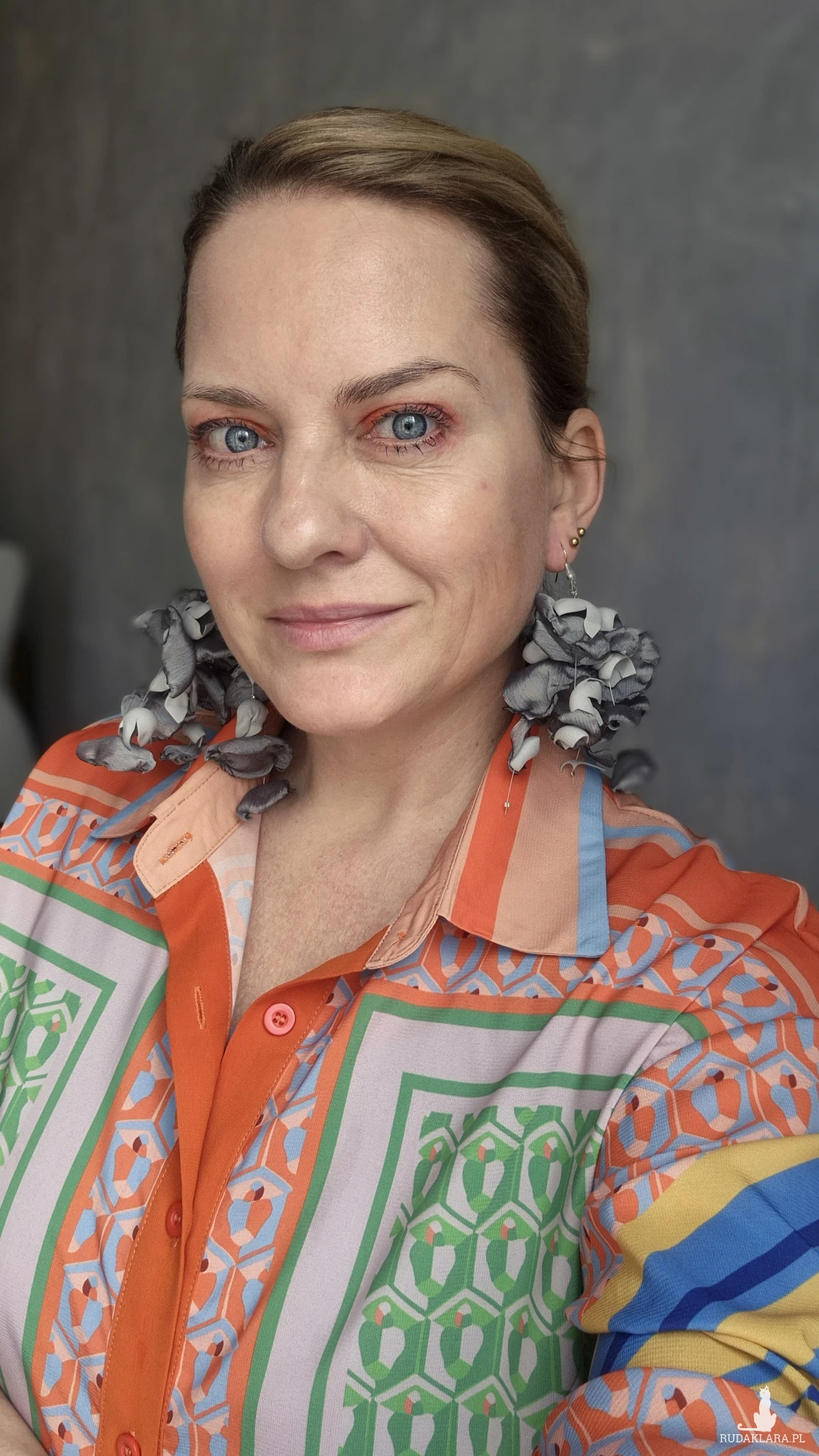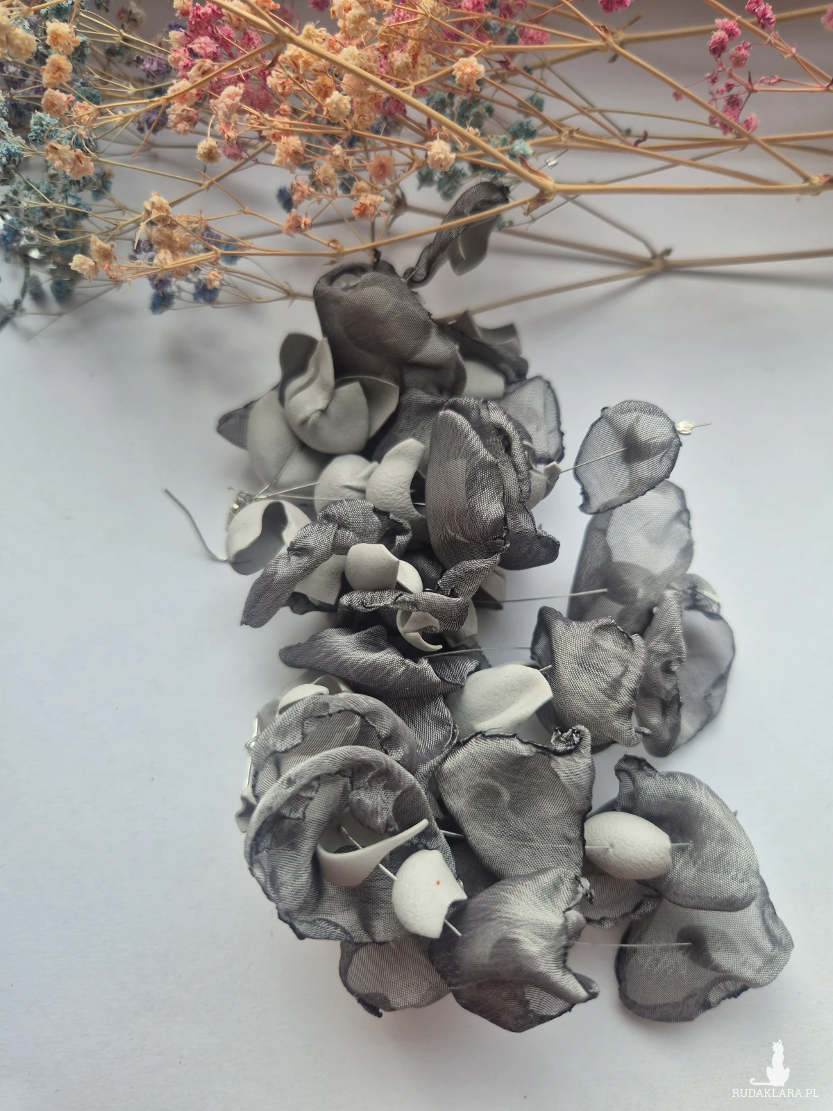 Kolczyki lekkie bujne kwiaty w odcieniach szarości rękodzieło