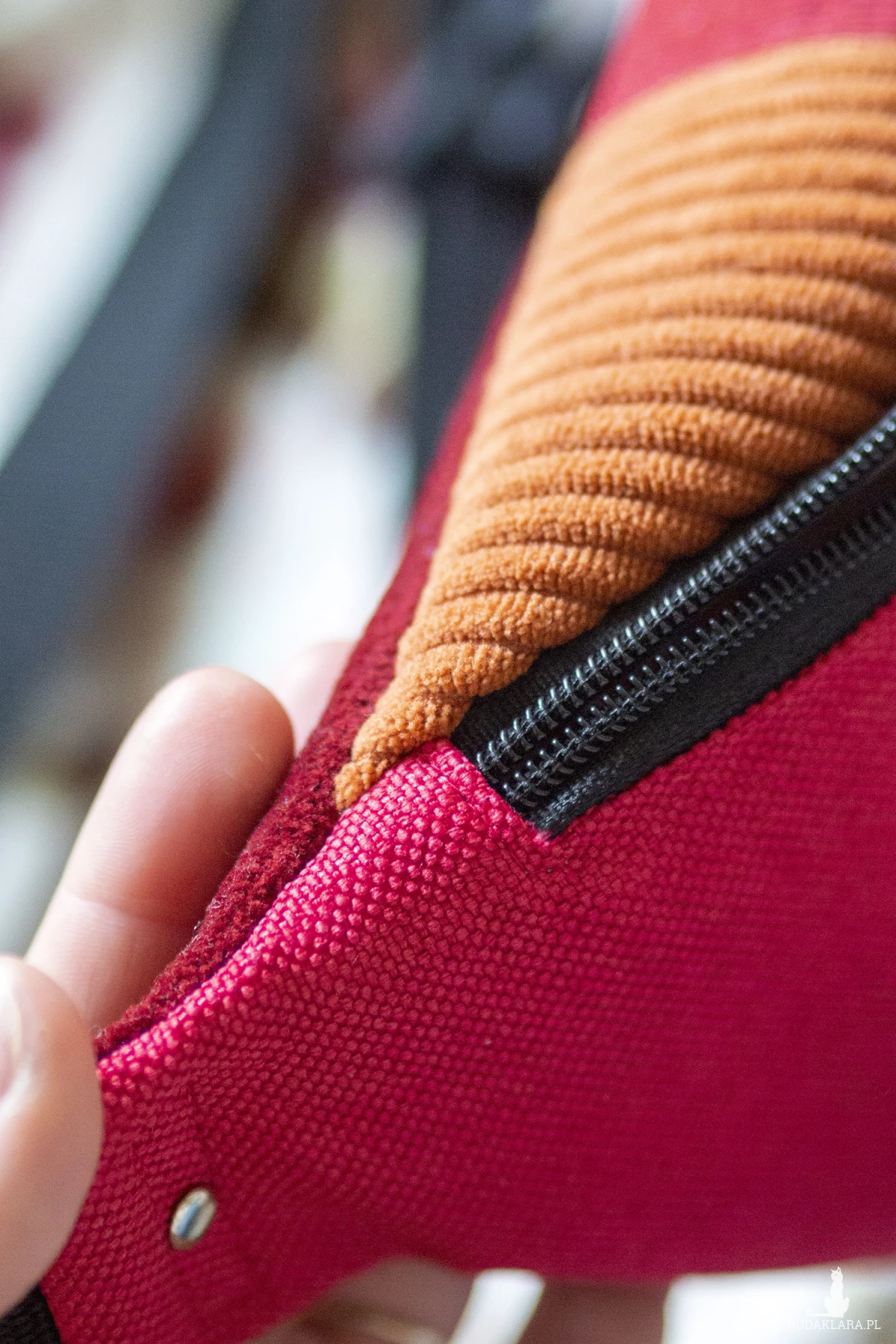 Duża nerka saszetka biodrowa w kolorze czerwonym.