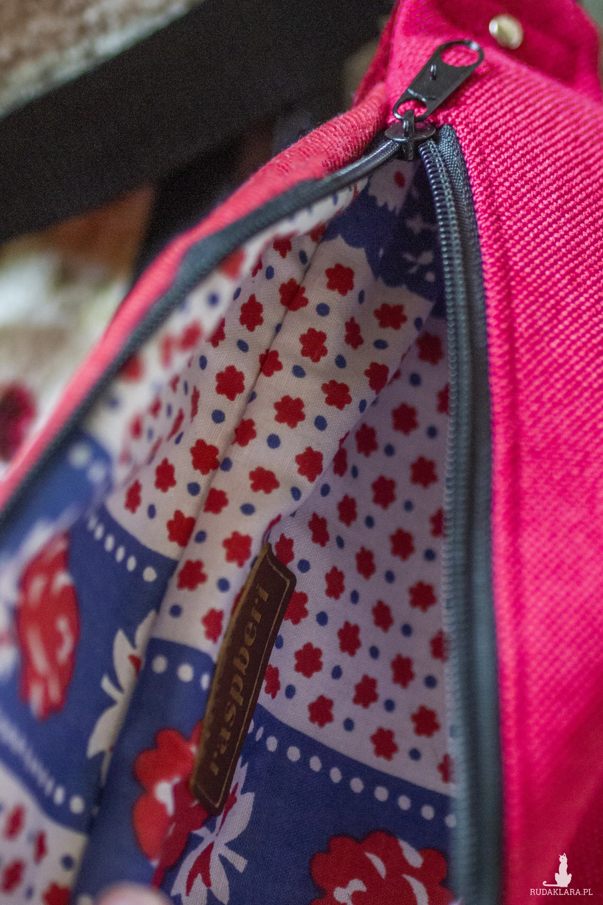 Wewnątrz saszetki wzorzysta, bawełniana podszewka.