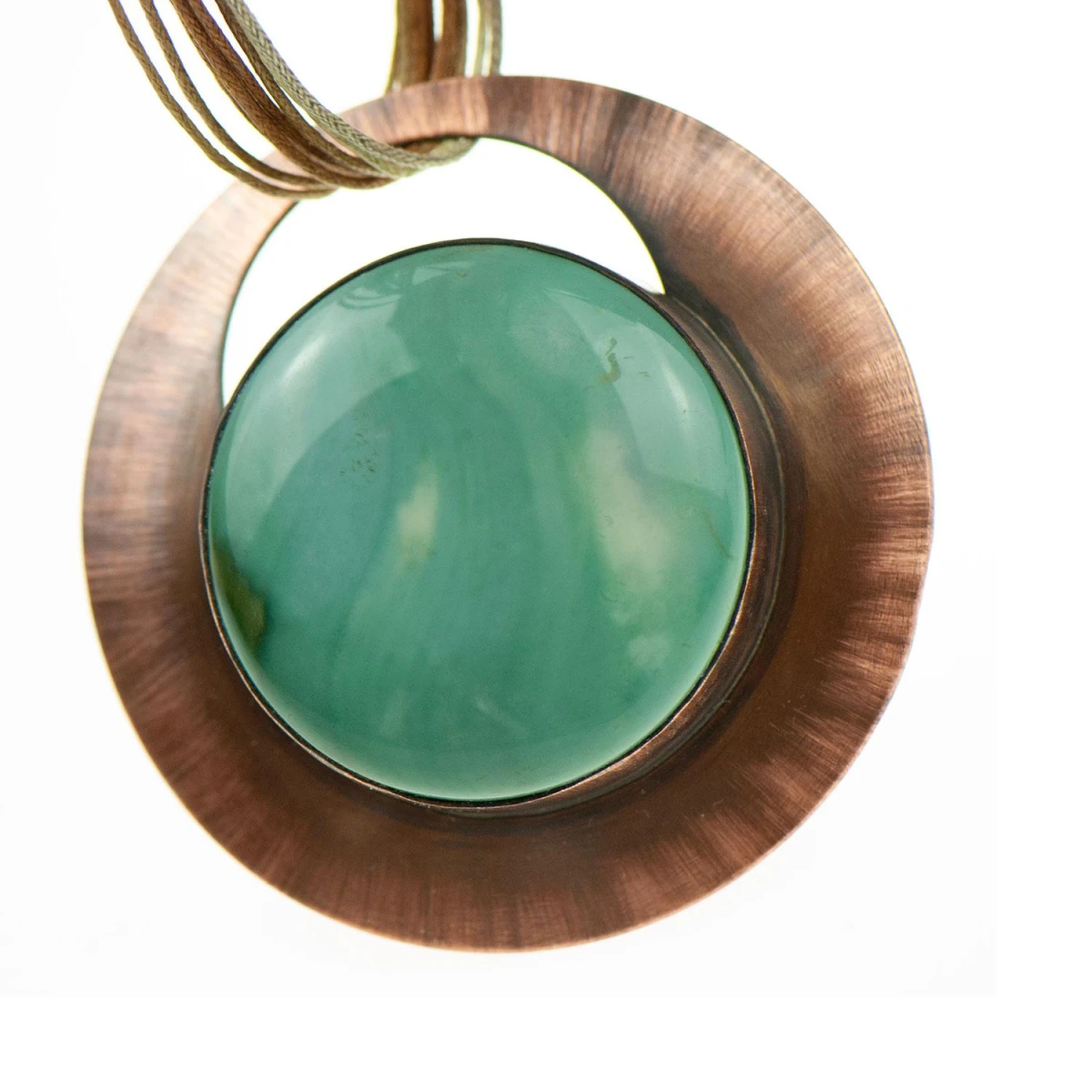 Wisior wykonany został z miedzi i agatu o średnicy ok. 40-45 mm. W procesie tworzenia wisiora blacha była polerowana, matowiona, a następnie malowana oksydą i przecierana, dzięki czemu powstał niepowtarzalny efekt kolorystyczny. Blacha otaczająca agat jest lekko wypukła oraz zabezpieczona warstwą ochronną. Miedziane koło, którego centralnym elementem jest niepowtarzalny agat, ma średnicę ok 7 cm.