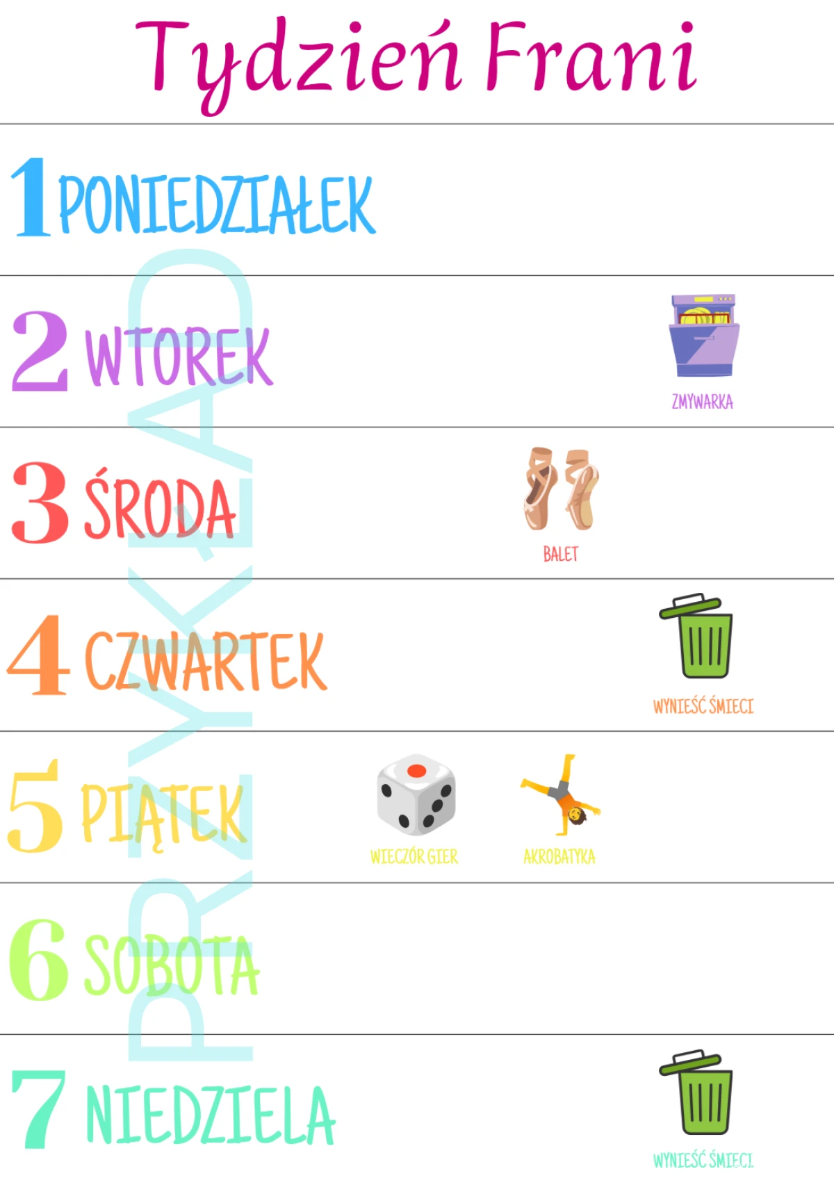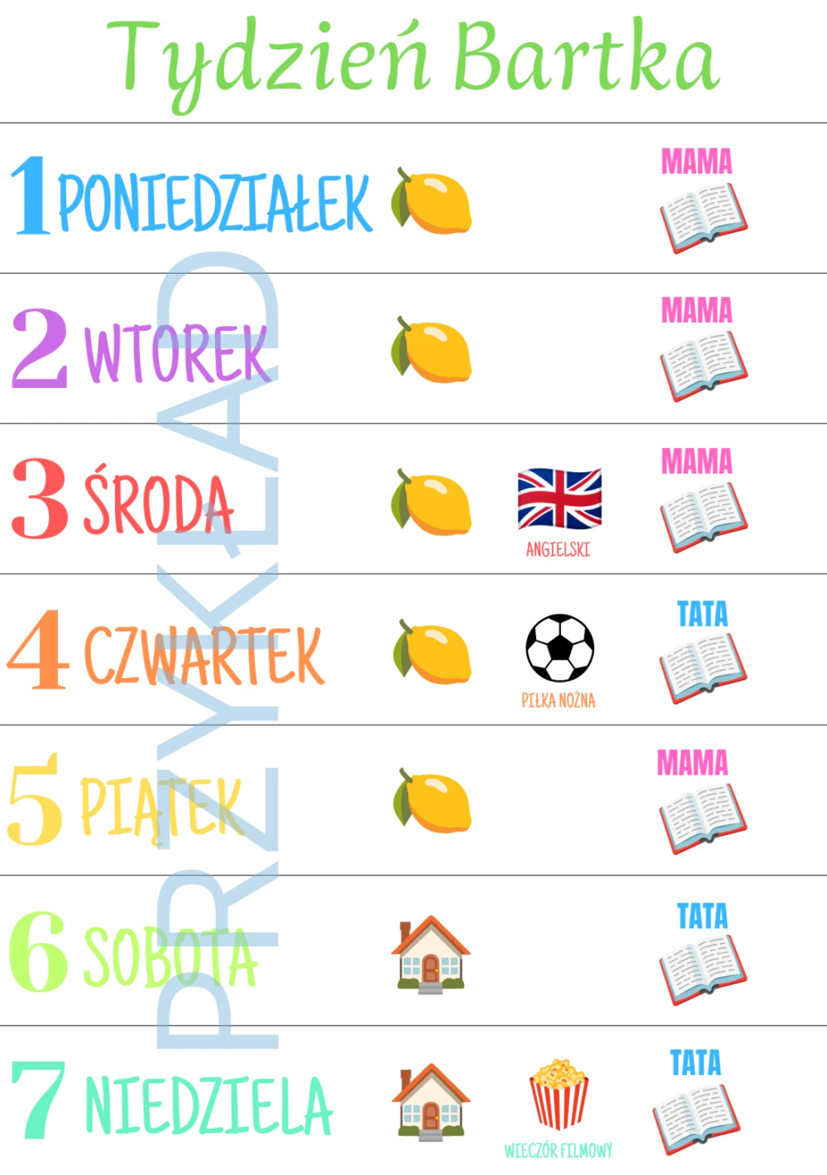 Tygodniowy kalendarz stworzony specjalnie dla Twojego dziecka i pod potrzeby Waszej rodziny.