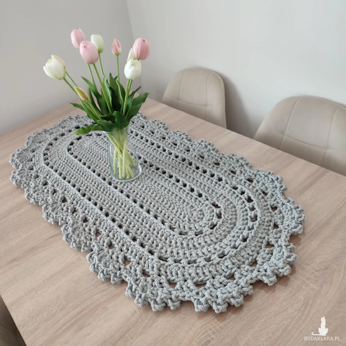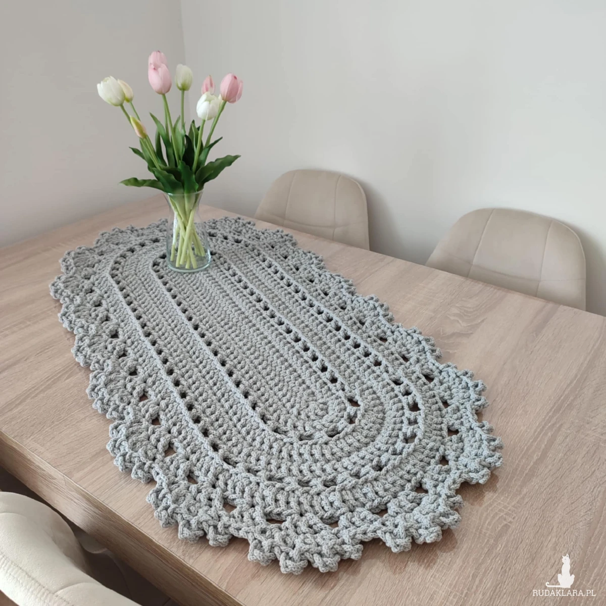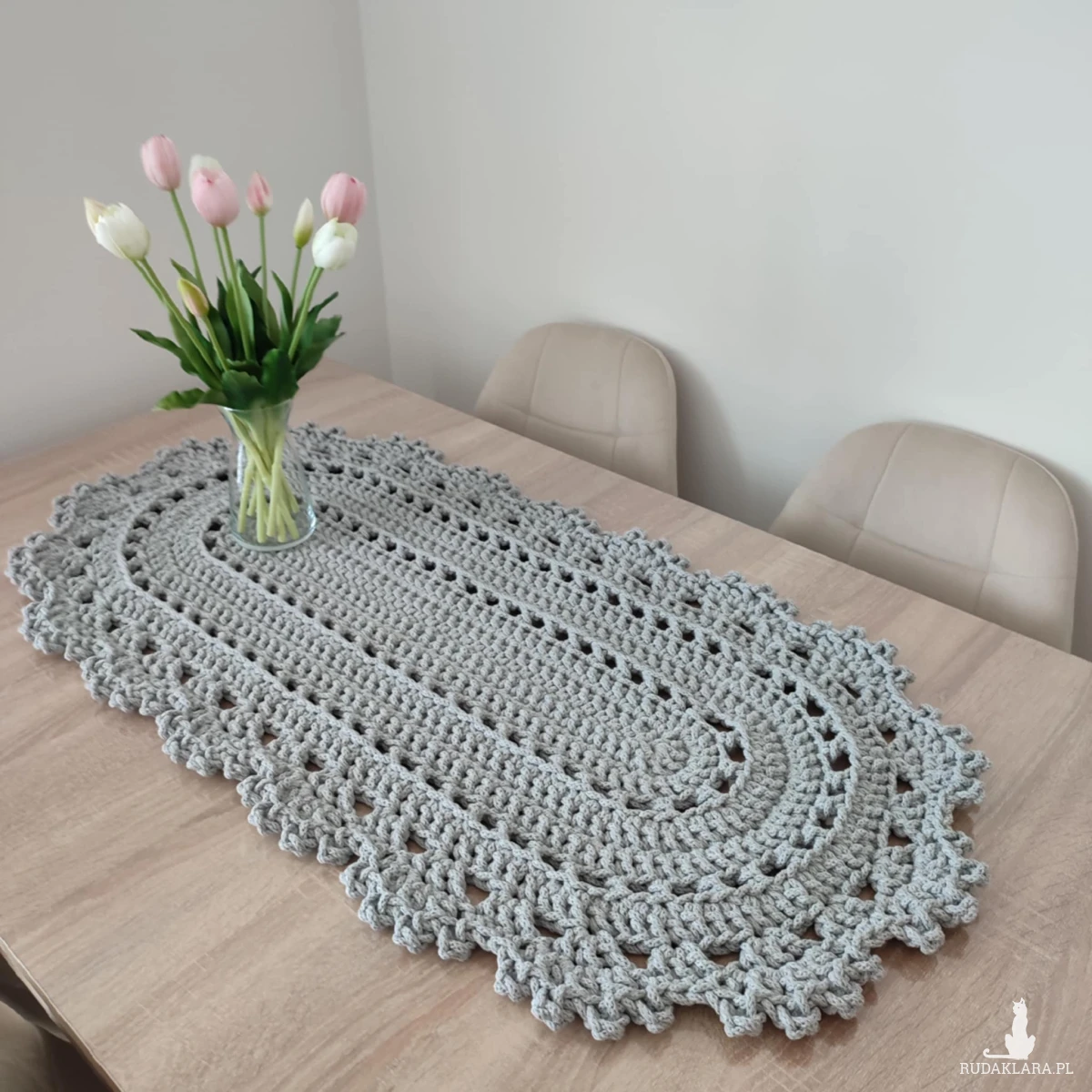 Bieżnik o wymiarach 50cmx100cm, wykonany metodą szydełkowania z polskiego sznurka bawełnianego 5mm.