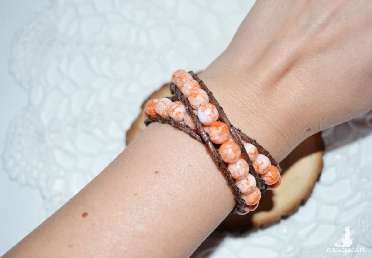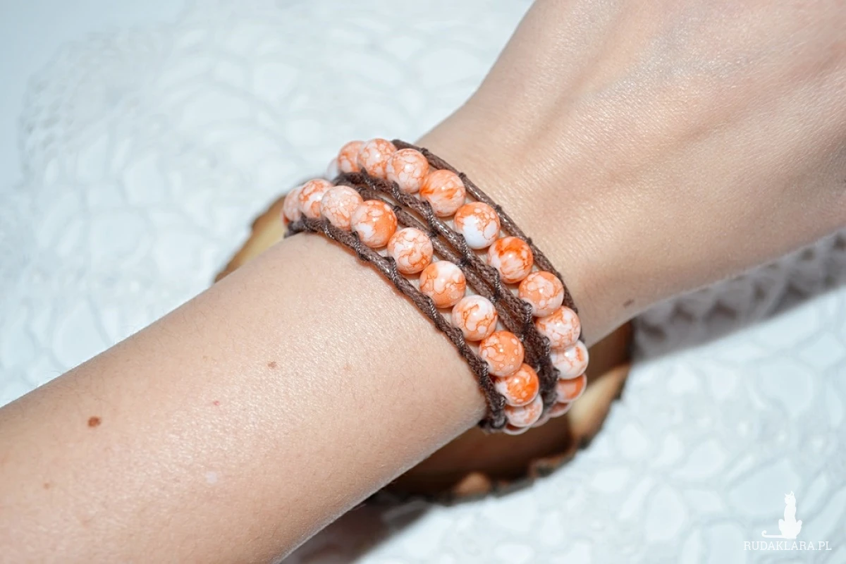 Bransoletka wykonana z woskowanego sznurka oraz szklanych koralików.