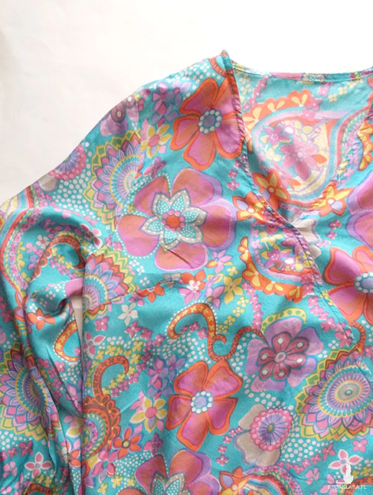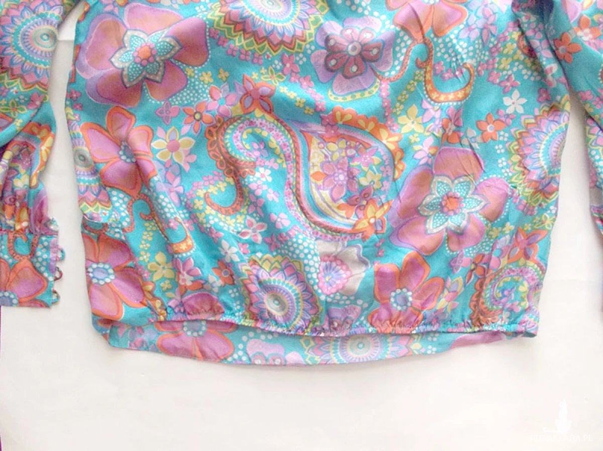 Nowa, oryginalna i kolorowa, bluzka w stylu boho. Bluzeczka z długim rękawem uszyta z kuponu naturalnego jedwabiu. Wymiary na płasko: