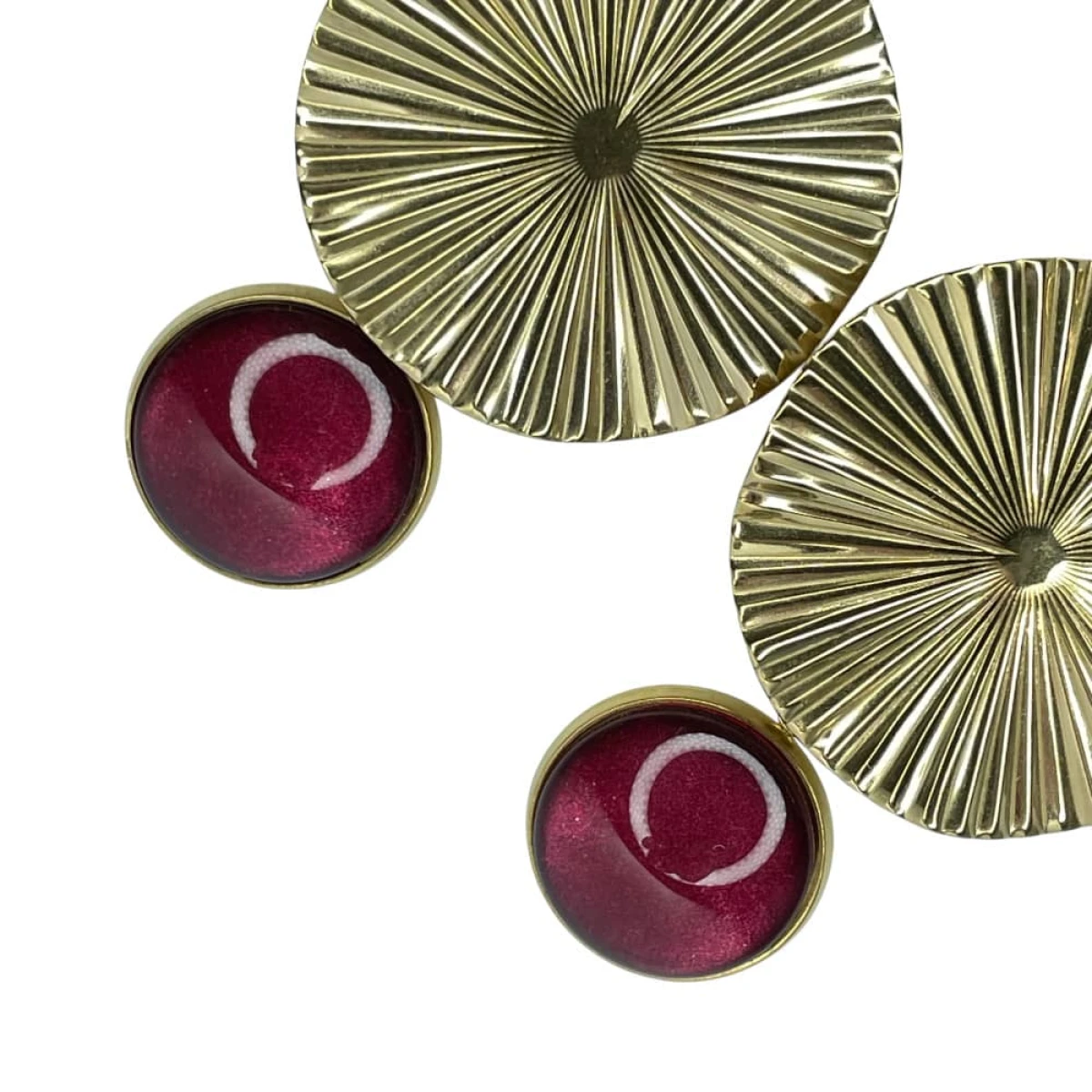 Te pełne blasku kolczyki są częścią kolekcji “W blasku perłowego księżyca”. Kolczyki wykonane są z ręcznie malowanych kaboszonów umieszczonych w bazach ze stali szlachetnej. Szklane elementy zachwycają subtelnym, opalizującym blaskiem, który jest niczym odbicie księżyca na tafli wody. Kolczyki mienią się w świetle, przyciągając wzrok i dodają elegancji każdej stylizacji. Ten dodatek jest idealny dla osób ceniących sobie wyrafinowaną i ponadczasową biżuterię. Materiał: malowane ręcznie szkło, stal pozłacana Długość kolczyków: 5cm Średnica szklanych kaboszonów: 16mm Średnica ozdobnej rozety: 32mm SKU: e58/4 Jak dobierać komplety? Kolory na zdjęciach mogą się różnić ze względów technicznych. Aby dobrać identyczny odcień, zwróć uwagę na numer SKU produktu. Pierwsza część to numer modelu, a numery po “/” to kolor, np. /17 oznacza morski perłowy. Produkty z tym samym SKU po "/" mają identyczny kolor. Dzięki temu możesz łatwo tworzyć komplety, mając pewność, że biżuteria jest w tym samym odcieniu. Stwórz własny komplet! Jeśli nie ma biżuterii w wybranym modelu lub kolorze którego szukasz, możesz ją zamówić indywidualnie. Wyślij do nas maila z nazwą, numerem modelu i kolorem, a my w miarę możliwości wykonamy biżuterię na zamówienie. Termin realizacji ustalamy indywidualnie. Biżuteria zostanie elegancko zapakowana. W przypadku zakupu kompletu, biżuteria zostanie zapakowana razem. Kolory na zdjęciach mogą delikatnie różnić się od rzeczywistych.