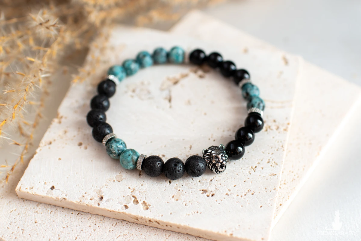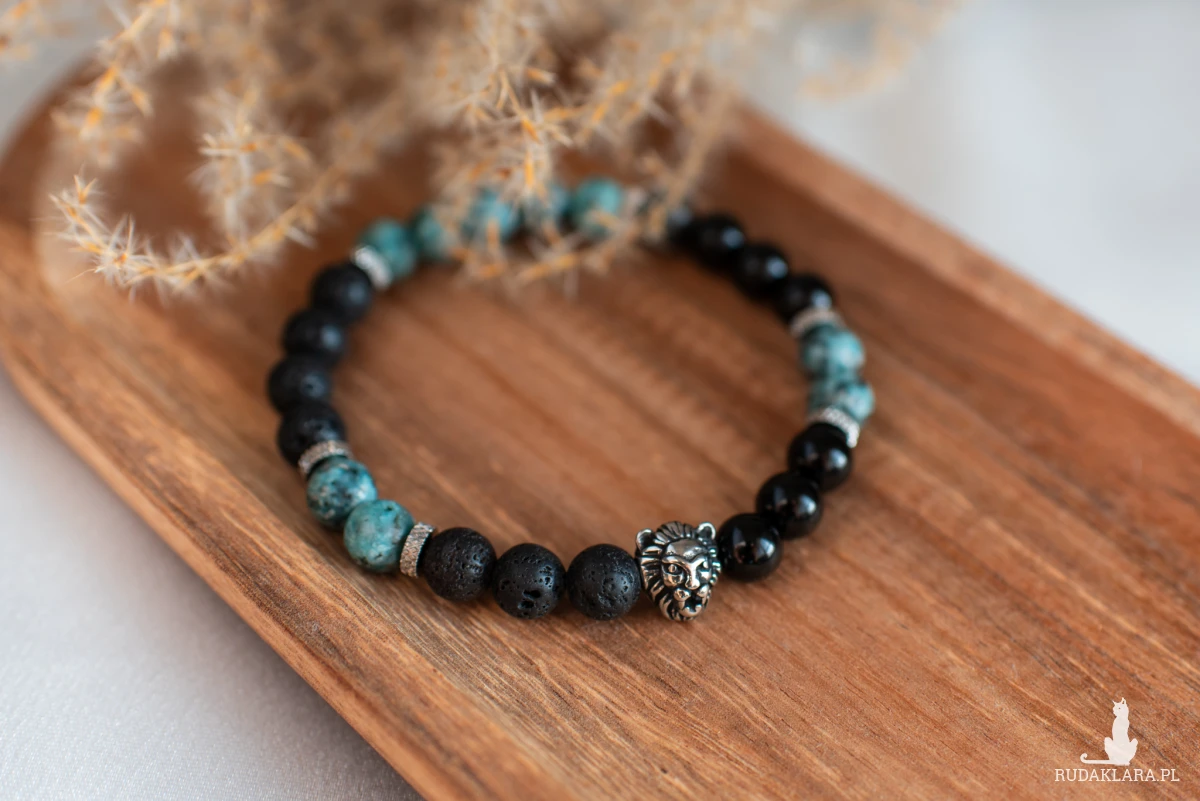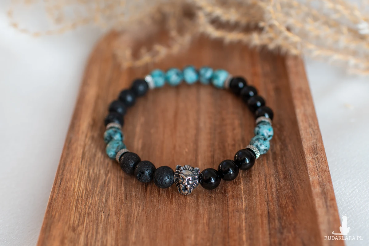 Męska bransoletka - czy to modny dodatek podkreślający styl ,pamiątka z ważnego wydarzenia lub też wyraz tożsamości - warto ją mieć. Kamienie naturalne: jaspis, onyks, lawa wulkaniczna.