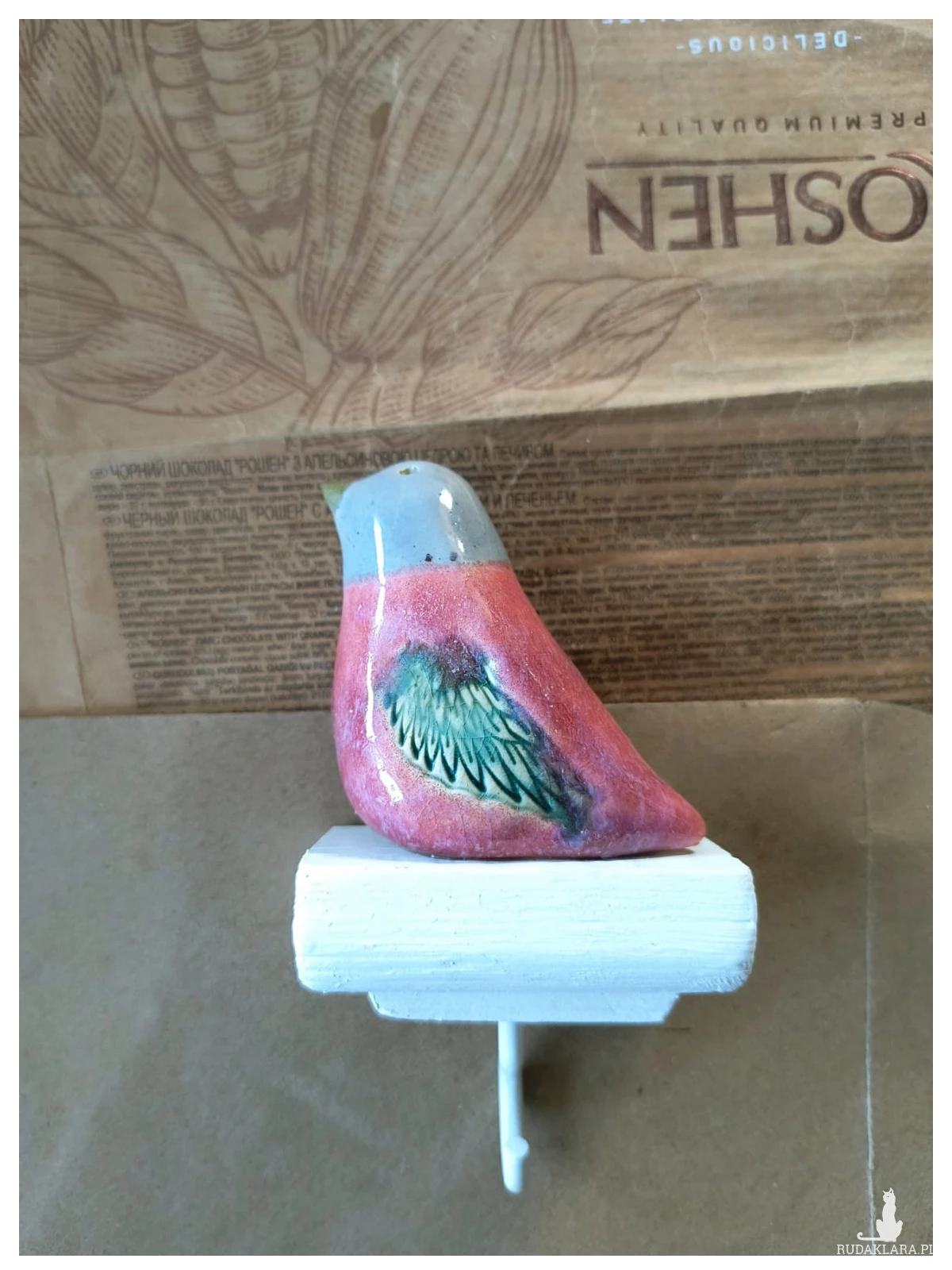 Wieszaczek z ceramicznym ptaszkiem w stylu vintage. Wymiary ok 6 x 8 cm. Serdecznie polecam jako miły upominek dla bliskiej sercu osoby.